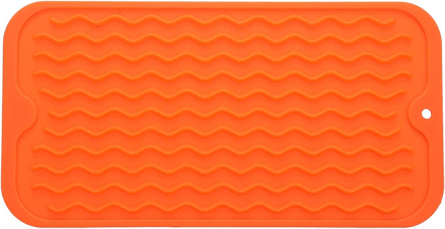 Silicone Dish Drying Mat for Multiple Usage,Easy clean,Eco-friendly,Heat-resistant Silicone Mat for Kitchen Counter or Sink,Refrigerator or Drawer Liner Orange S 12 inches x 6 inches