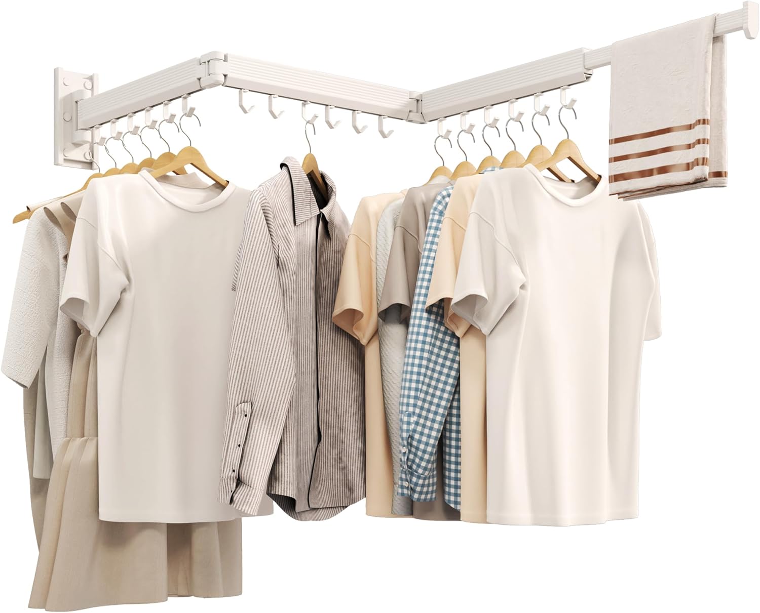 Wall Mounted Clothes Drying Rack, Collapsible Laundry Drying Rack, Retractable Foldable Drying Rack Clothing for Hanging Clothes