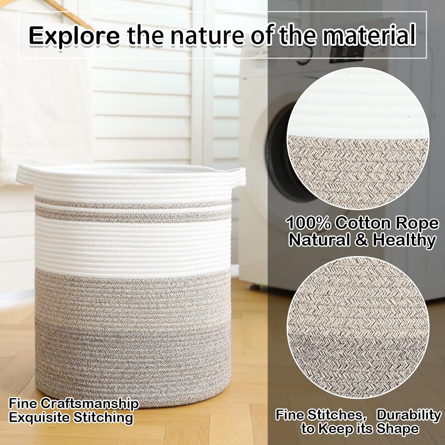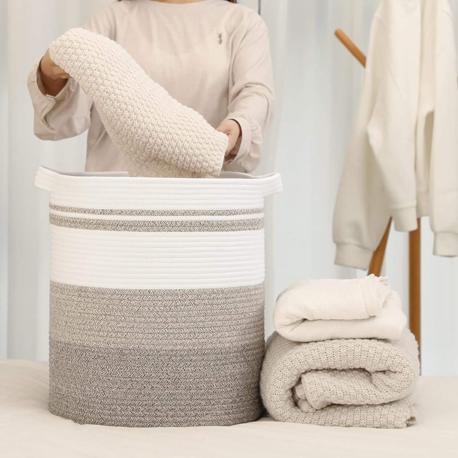 - Washable Large Basket: This large basket can be washed by hand or machine with gentle detergent. If machine washed, please put them into a laundry bag. NOTE: These cotton rope baskets are folded when shipping, but it will turn back to its elegant shape quickly if you fill it with some towels or clothing, and iron is great idea to remove the creases