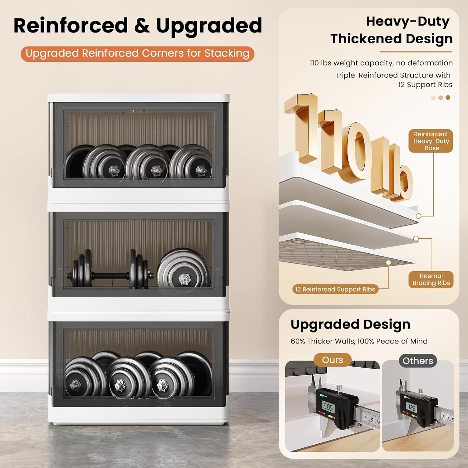 - Quick Assemble & Fold: Our storage containers can be assembled in 1 minute and folds down to 4 inches when not in use, easily tucking under beds/tight spaces—saves 80% of space. Heavy-duty PP plastic (2mm thick walls) supports 110 lbs (50 kg)/pack