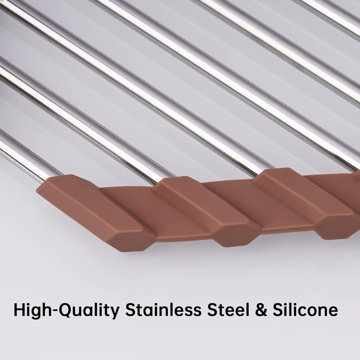 - ✔️【Food Grade Materials】Made of premium quality SUS304 stainless steel and BPA-free food safe silicone edges, this drying rack is waterproof, rust-proof, durable and scratch-resistant. Solid construction with non-slip silicone ends securely attached to stainless steel rods.