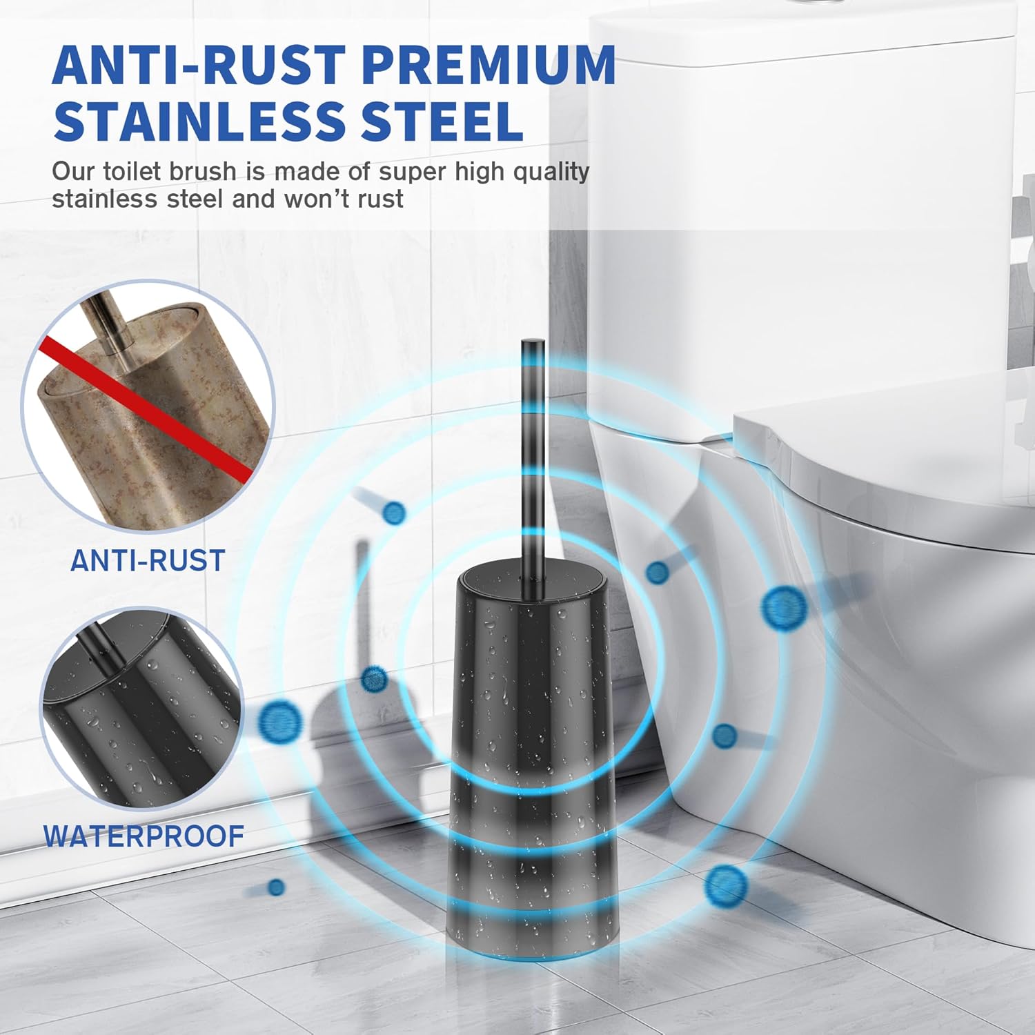 - 🚽【STABLE TOILET BRUSH HOLDER】 Toilet brush holder with stainless steel holder not only holds drips and avoids stains in your bathroom, but also toilet brush with larger bottom can stay firmly in grown.