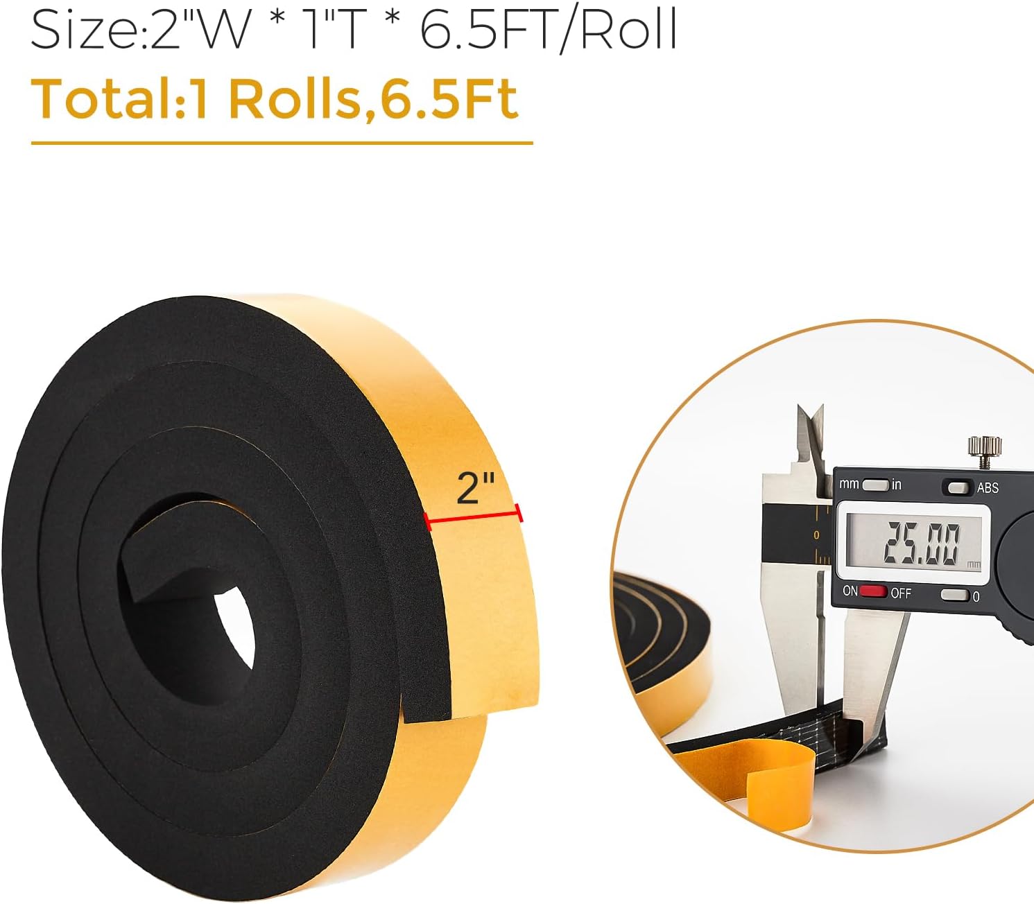 6.5 Feet Weather Stripping Door Seal, 2" Wide X 1" Thick Door Seal Strip High Density Foam Tape Adhesive Strip for Door Soundproofing,Window Insulation (2" x 1" x 6.5FT,Black)