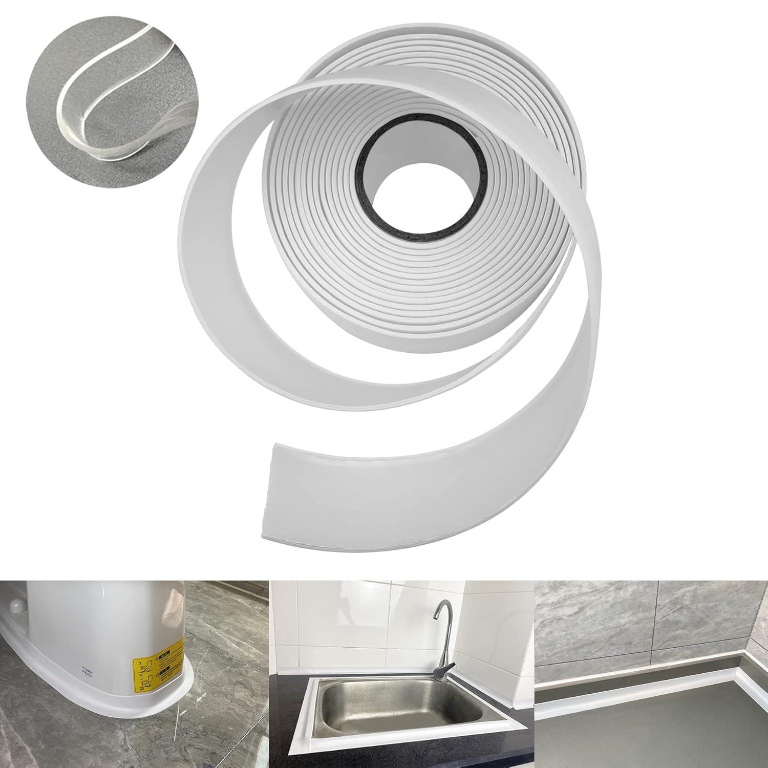- 【EASY TO USE】Waterproof Sealant PVC sealing strip with crease design, foldable 90 degree clear or white sealant to tightly seal seams and corners between walls. EASY TO USE AND TRIM: Clean, flexible and cuttable tape caulk. Peel and stick material adheres easily. Daily wiping is all it takes to keep surfaces as clean as new.