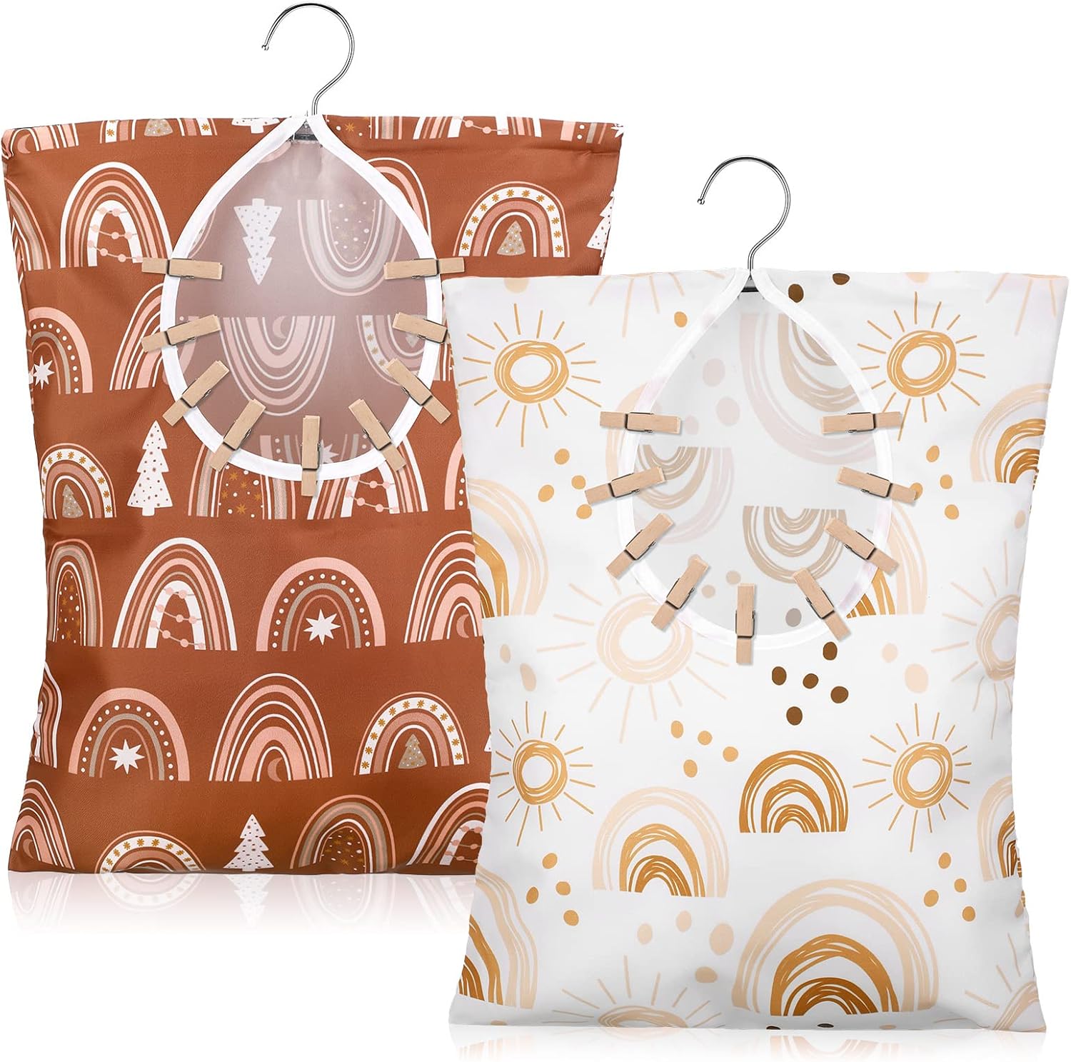- Summer Theme: package includes 2 pieces of clothespin bags with hanger in different designs, which can add charm to your home; Proper quantity can satisfy your different daily use and replacement needs