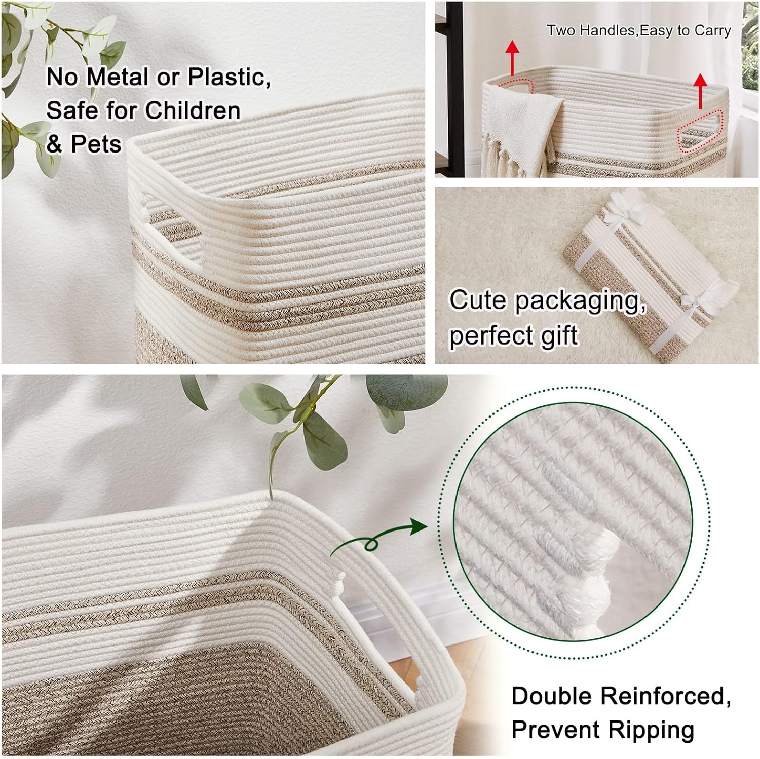 - Double reinforced Handles : We use the highest grade cotton rope as raw material and all the stitches are distribution and fine,which makes the baskets better wear resistance and durability to be used for many years.In addition,each large basket features thick,double stitching around the handles to prevent ripping and keep its shape,never fall off