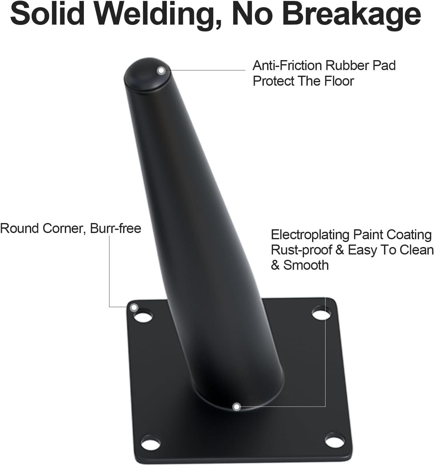 4PCS 6 Inch Matte Black Tapered Angled Legs for Furniture, Metal Mid Century Mordern Feet, Heavy Duty Slanted Stand Legs Kit for Couch, Coffee Table, Desk, Dresser, Sofa, Chair