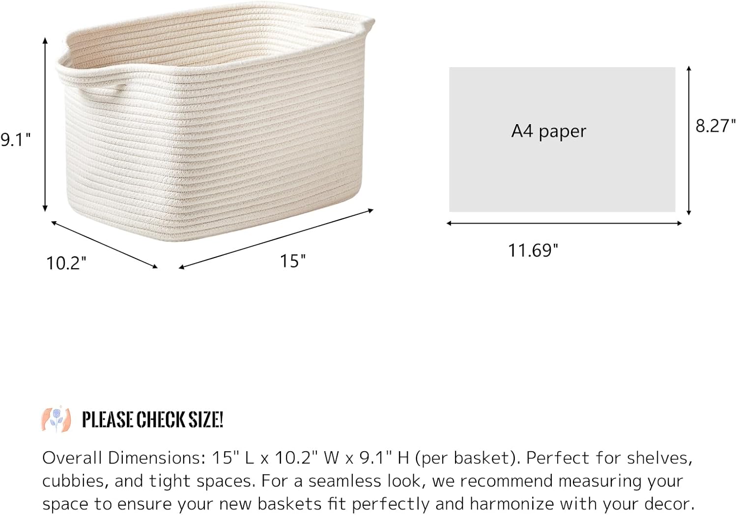 - Please measure your space before ordering to ensure the best fit– Measuring 15"x10"x9", it offers ample capacity without taking up too much space—fits easily on shelves, closets, or next to the sofa.