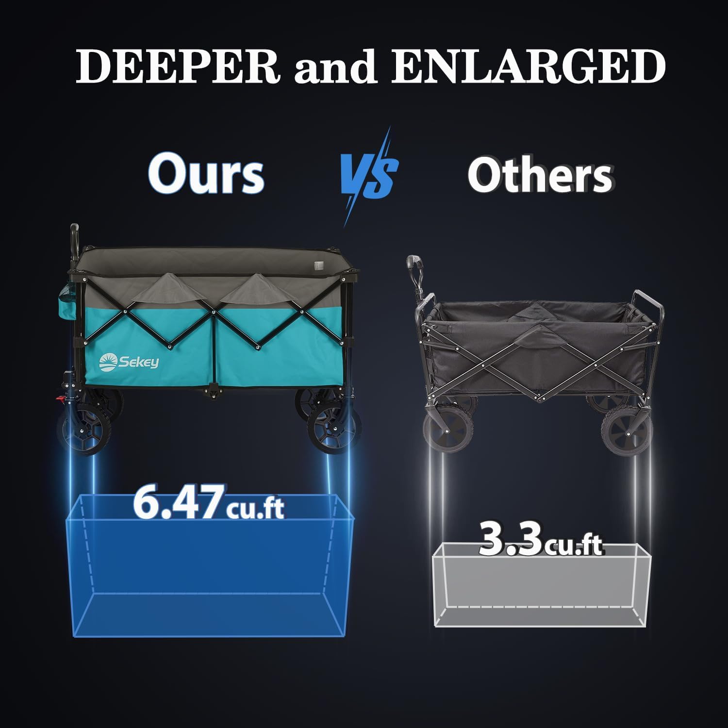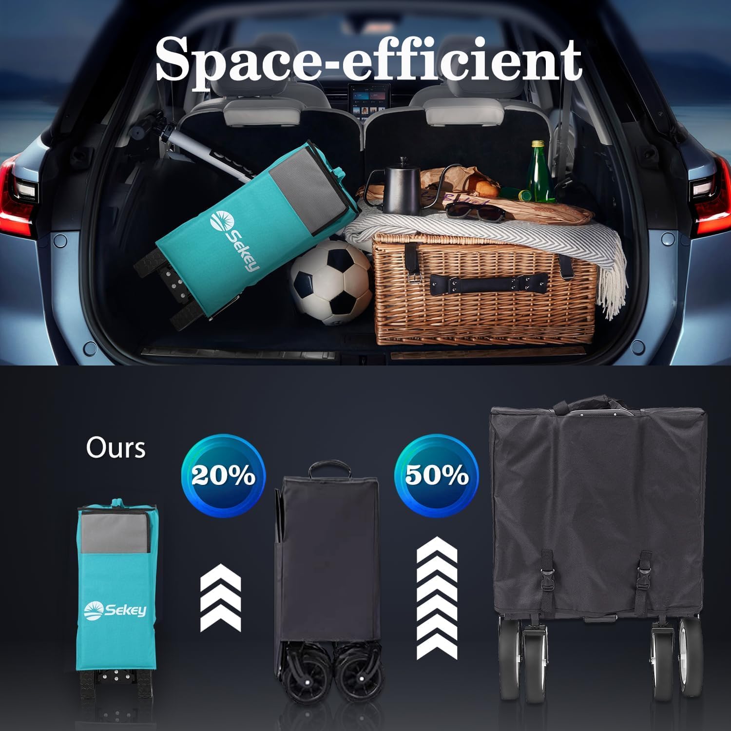 Sekey 220L Collapsible Foldable Wagon with 330lbs Weight Capacity, Heavy Duty Folding Wagon Cart with Big All-Terrain Wheels & Drink Holders (Turquoise)