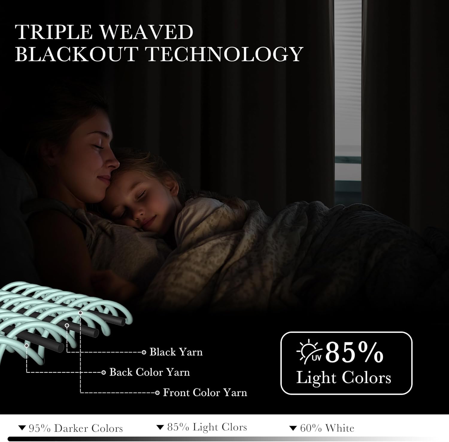 - LIGHT CONTROL - Adopt the triple weave technology, the heavy and soft fabric can prevent harsh sunlight and UV ray from passing through the windows. Dark color works better than the light one