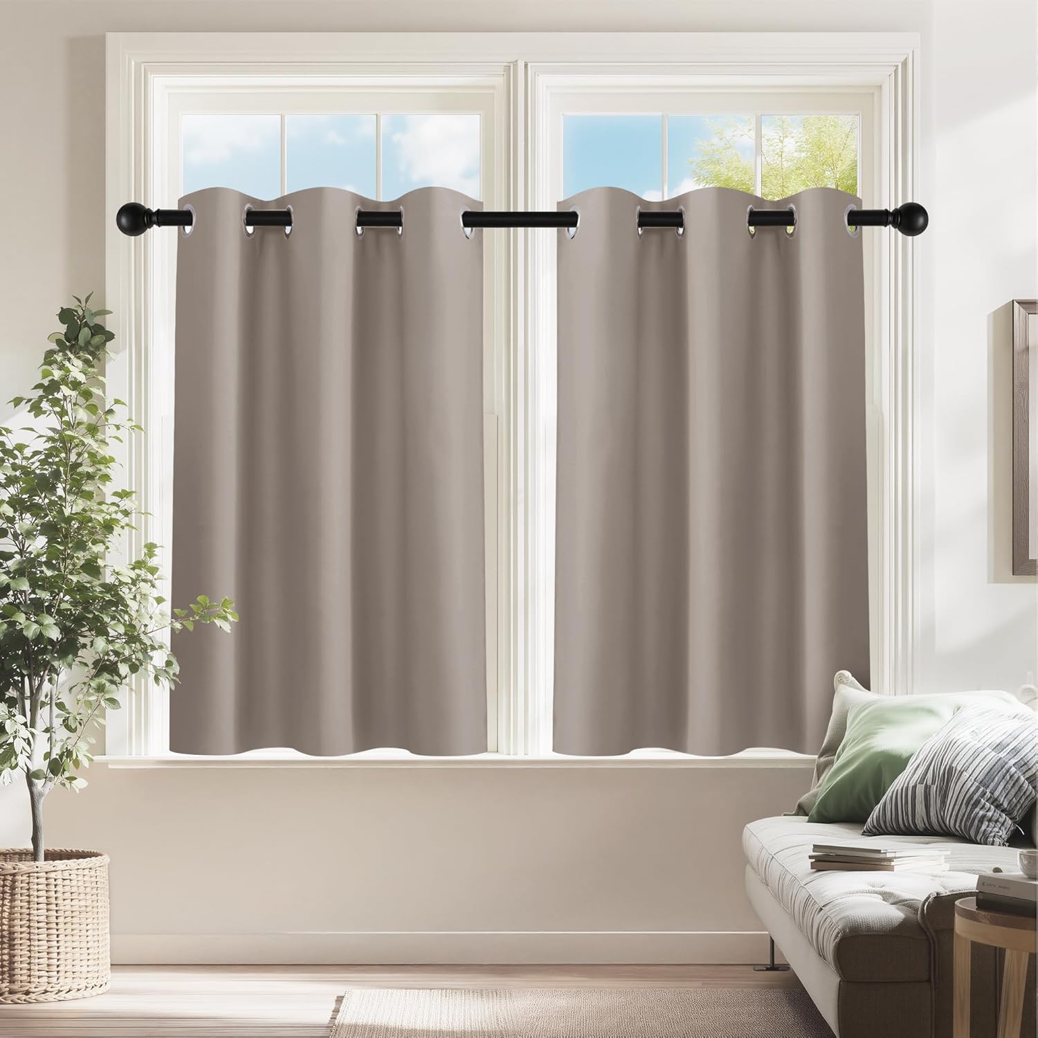 PONY DANCE Blackout Curtains for RV Camper Windows, Privacy Thermal Insulated Mini Curtains & Drapes for Bedroom Bathroom Kitchen Door Window Farmhouse Cover(2 Panels, W 42 x L 36 inches, Light Taupe)
