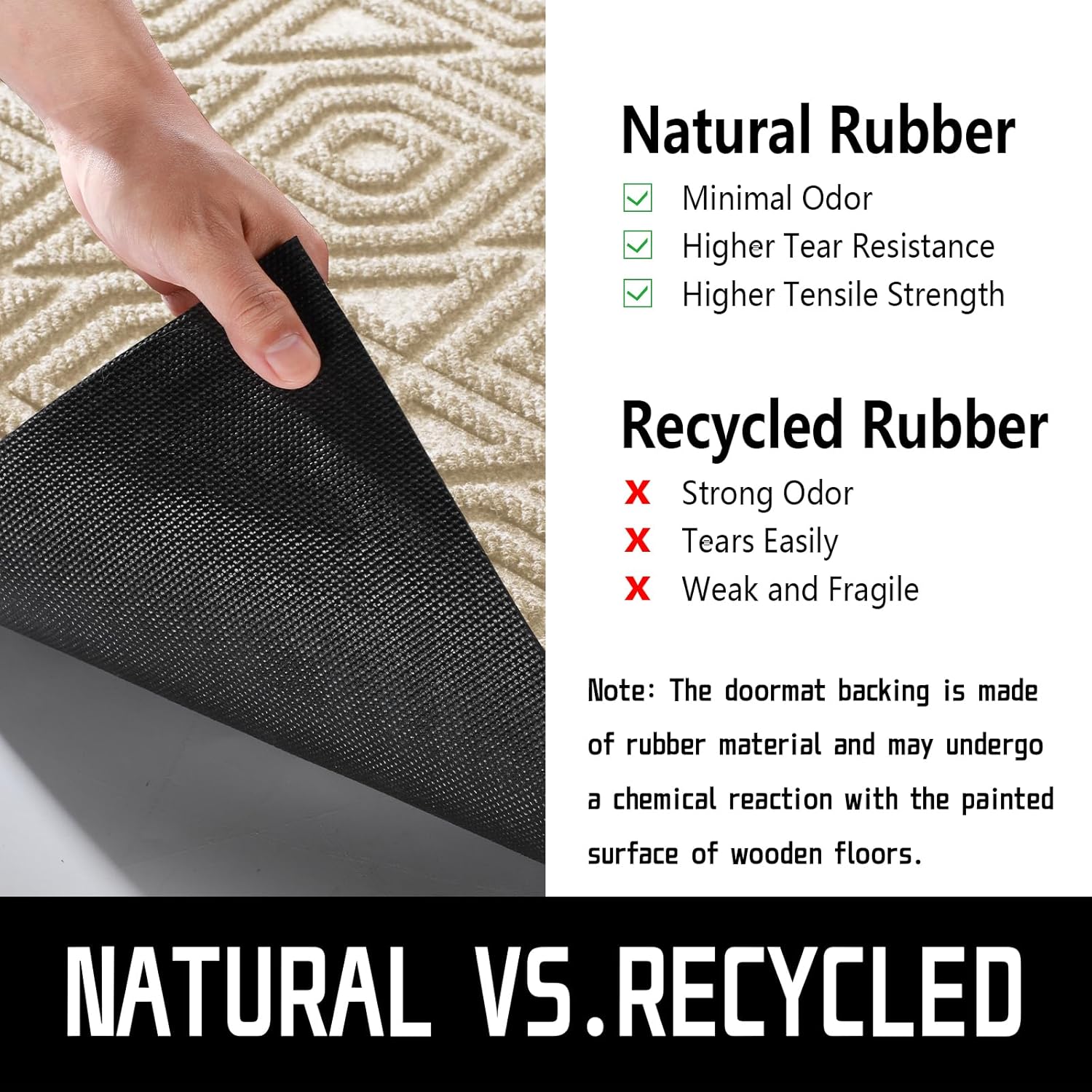- [NON SLIP RUBBER BACKING] Yimobra heavy duty door mat, 0.20 inch ultra-thin design, can glide under most doors without jamming or curling. The indoor mat uses a high-quality non-slip rubber backing to help prevent you from slipping when entering or going out, keeping you safe. At the same time, the rubber backing can prevent water and mud from penetrating the floor, keeping door rug in place and not sliding or wear the floor and effectively protect your indoor floor
