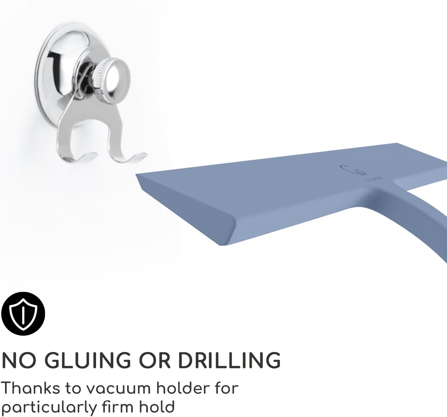 - SUPER STRONG SUCTION HOOK - No drilling or gluing required! You can easily remove and reattach the squeegee stainless steel hook to smooth surfaces such as panes, tiles, shower walls, shower glass surfaces, doors, cubicles, and enclosures.