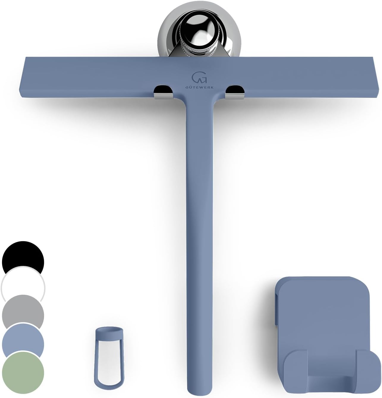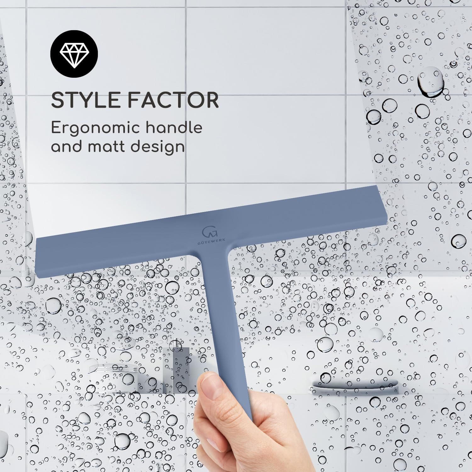 - MINIMALIST TIMELESS DESIGN - The GÜTEWERK glass squeegee is crafted with a matte white finish that impresses with its elegant timeless and smart design. In addition, the chrome-colored stainless-steel hook integrates well with any modern bathroom.