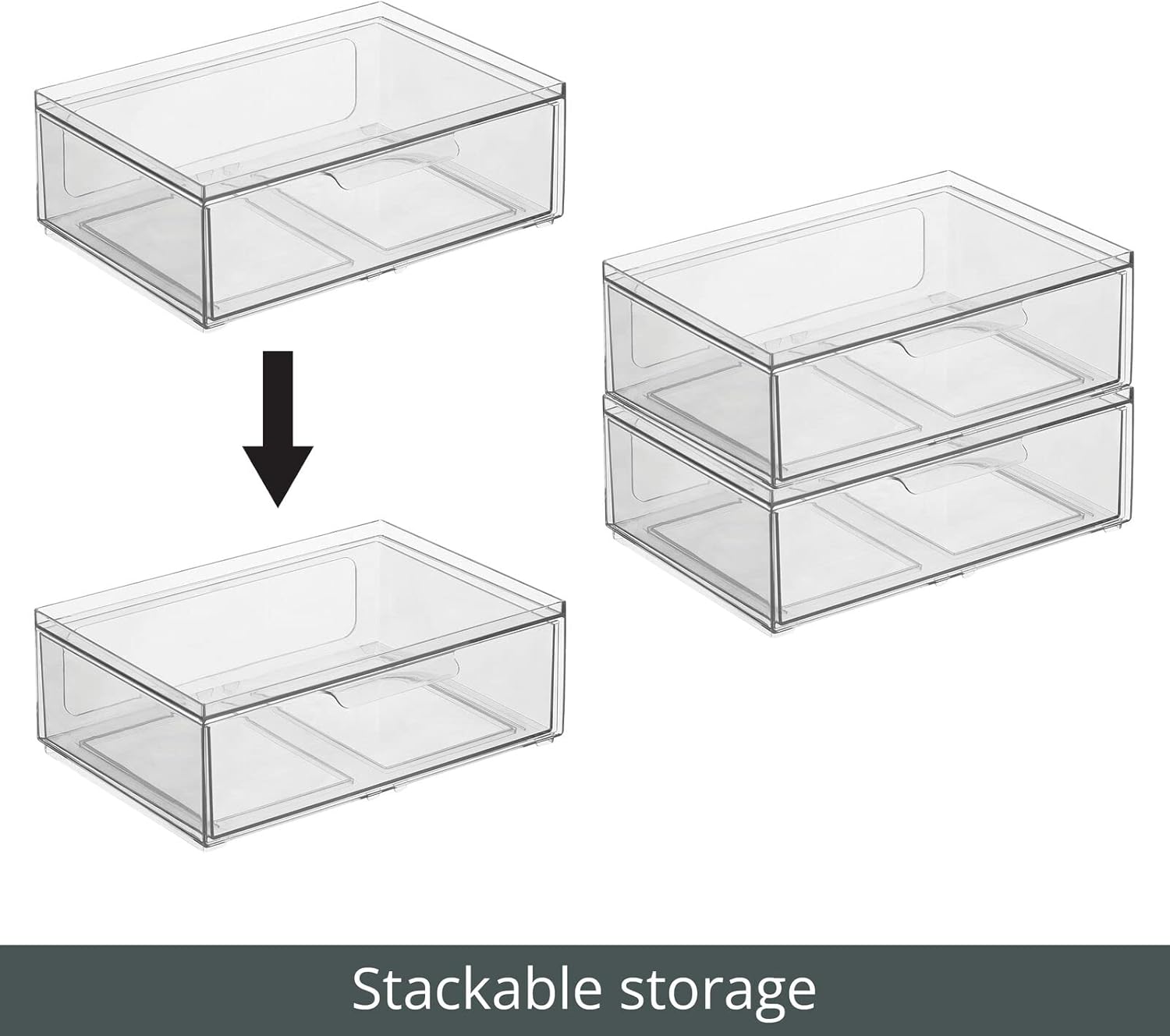 - STACKABLE: Pull-out drawers easily open to making grabbing what you need quick and easy; Simply pull it open giving you a clear view so you can easily find what you are looking for without removing the lid; Stackable for creating vertical storage to maximize space; Use individually or together to create a custom storage system that works for you; Keep items contained, organized and dust-free; Stack them vertically to maximize your storage potential