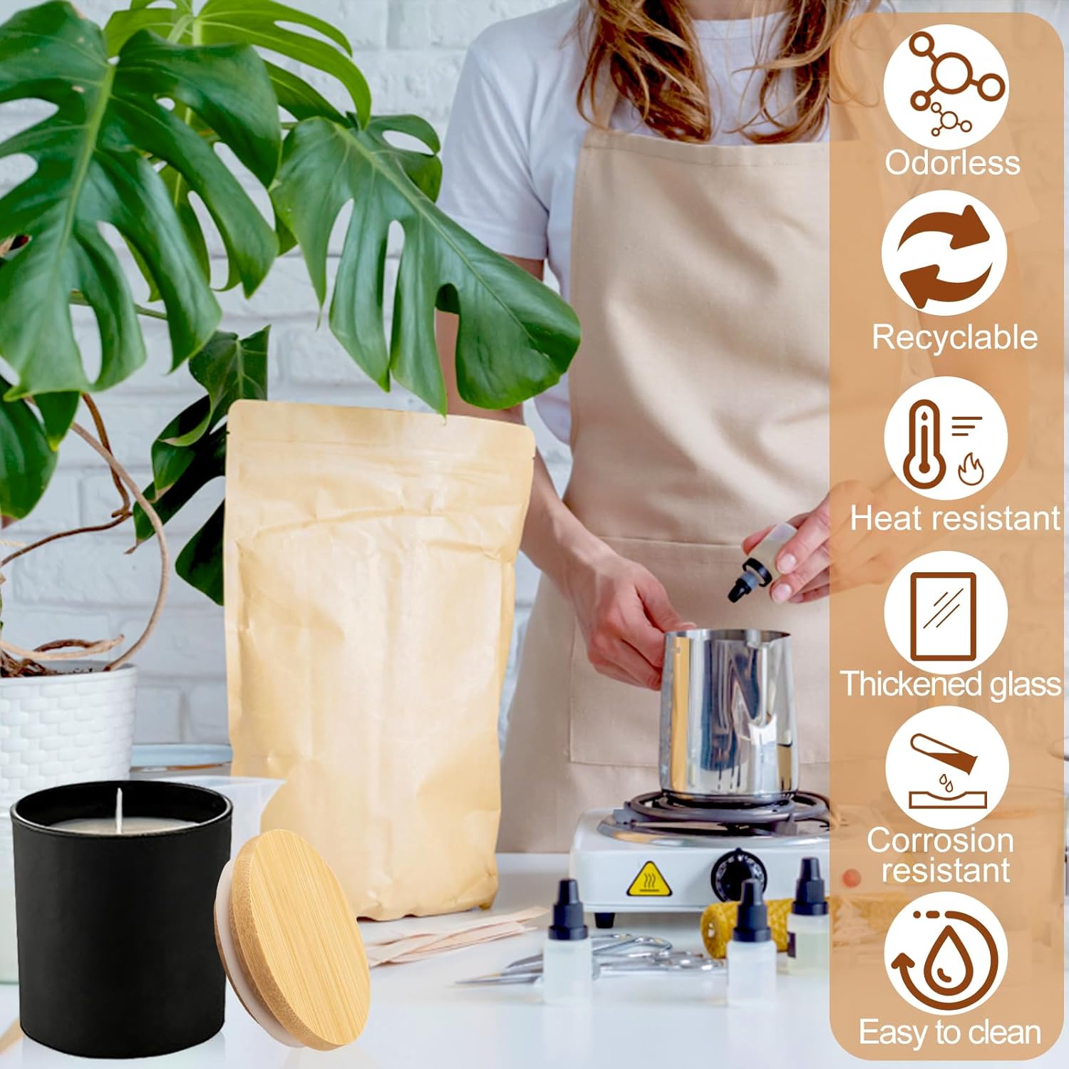 - 【Nature-inspired origin】: The candle jars come with bamboo lids designed to create an airtight seal. These bamboo lids, combined with rubber sealing grommets, are perfect for preserving aromatic and flavorful scents. To enhance the homemade feel, the jars also include sticker labels for personalization.