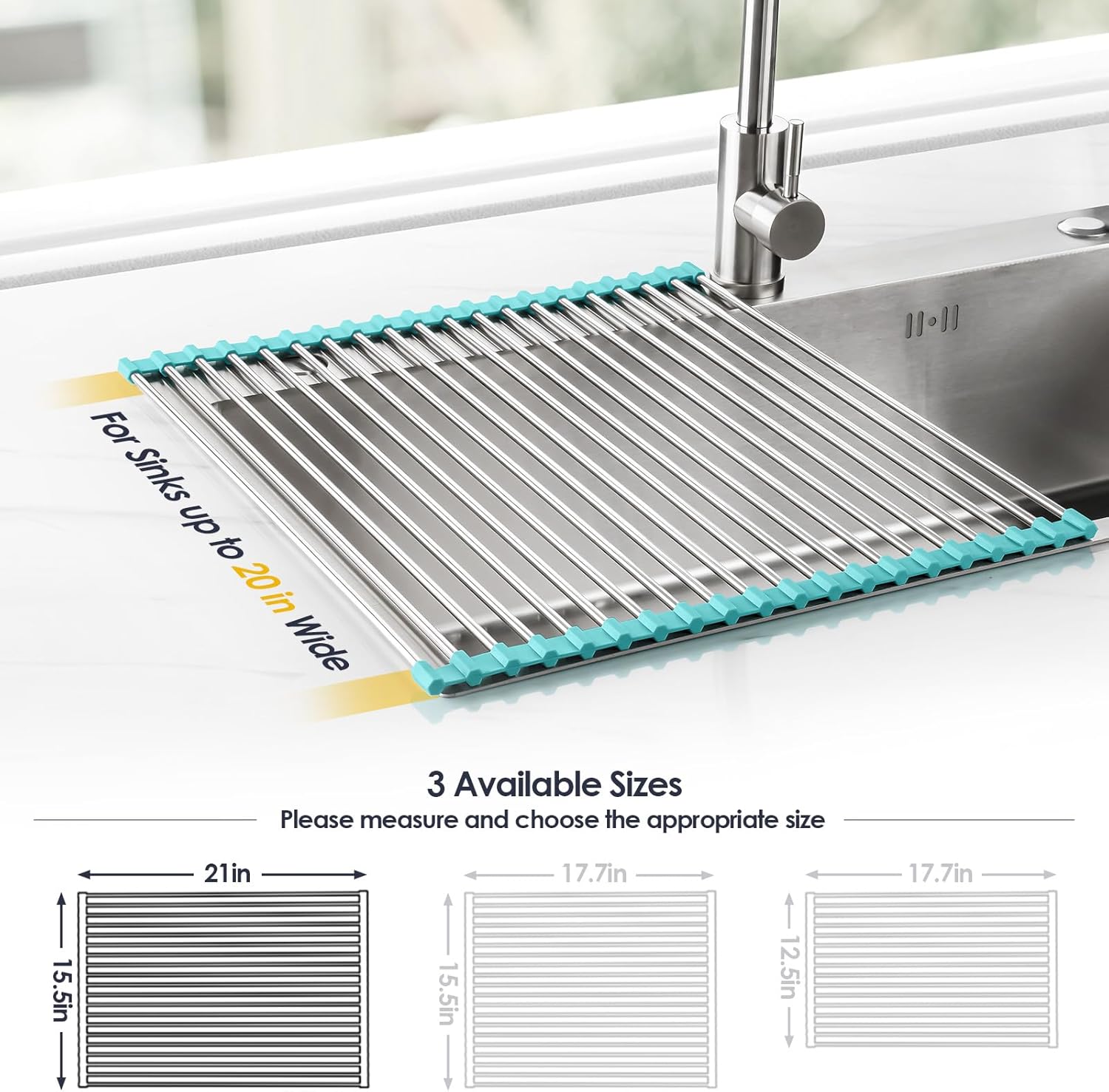 - [Universal Fit] - Choose from our three sizes: 17.7x12.5in, 17.7x15.5in, 21x15.5in to fit your sink. Confirm sink size and select from options above on this page. Current selection: 21x15.5 in