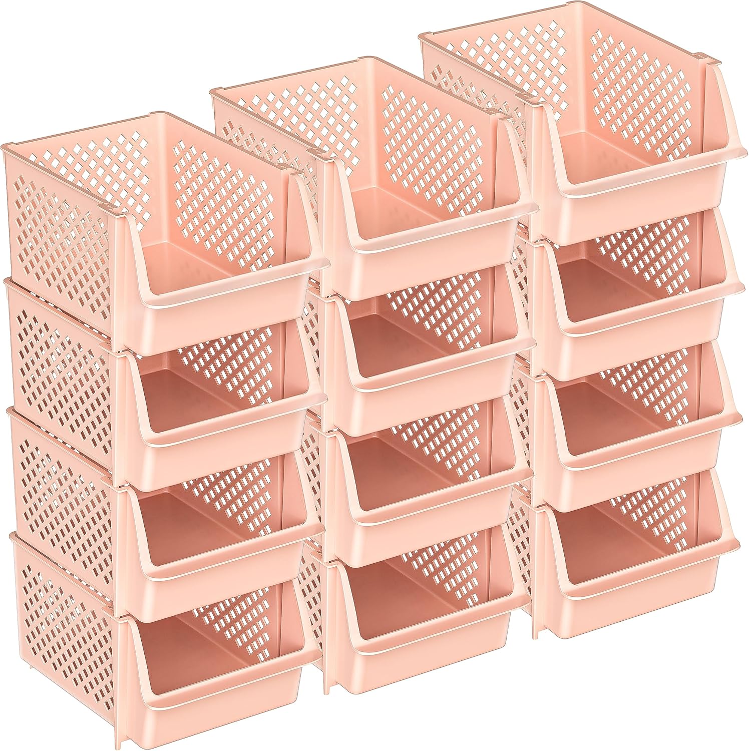 Skywin Stackable Storage Bins for Pantry, 12 Pack Stackable Bins For Organizing Food, Kitchen, and Bathroom Essentials (Light Pink)
