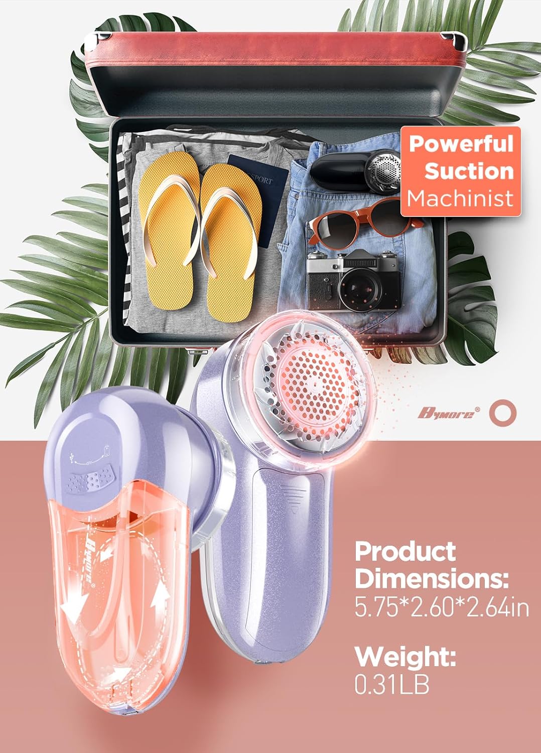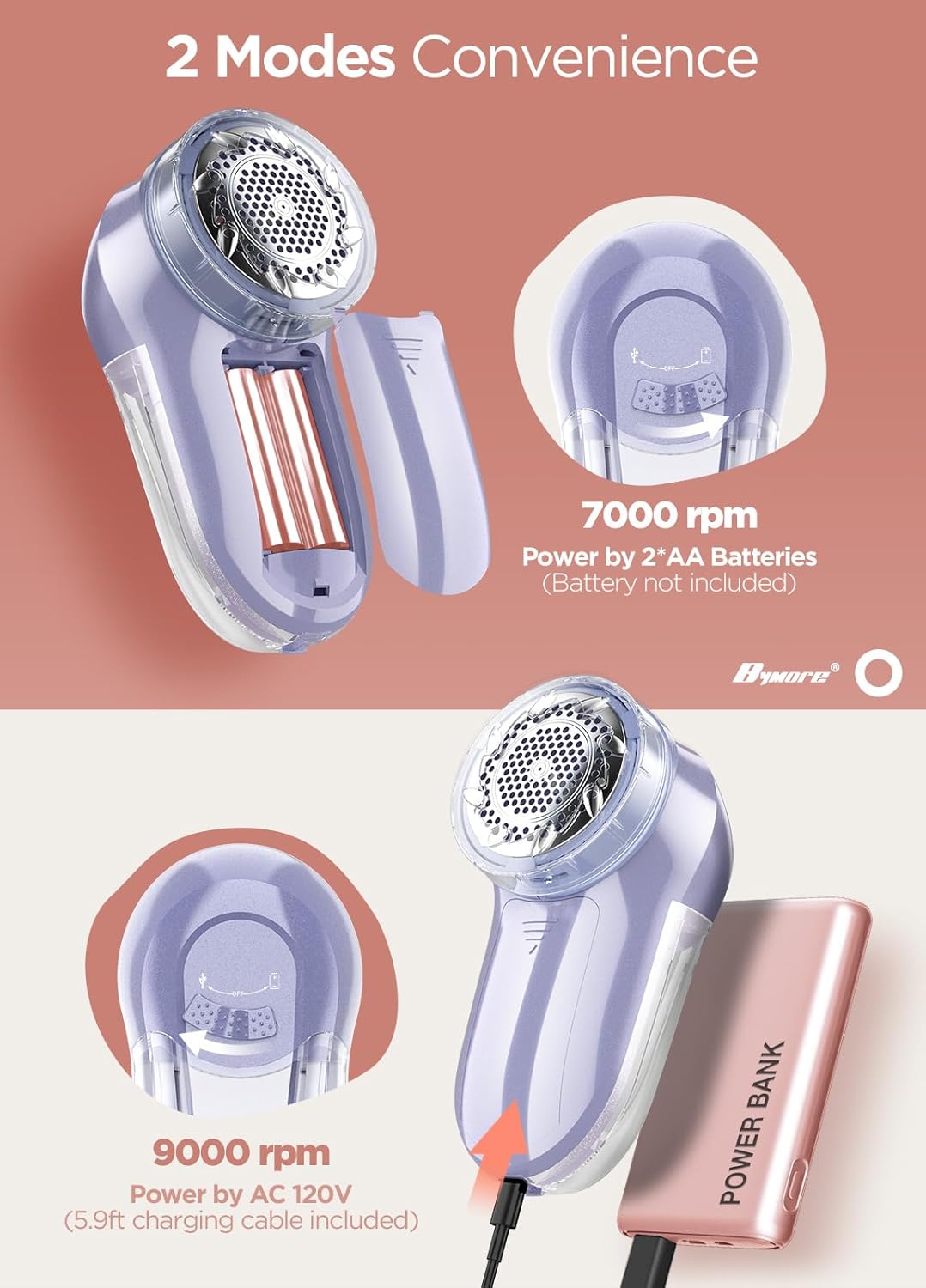 Bymore Fabric Shaver, Lint Remover, Lint Shaver Defuzzer Sweater Shaver for Clothes and Furniture with AC Adapter Pill Fuzz Remover-Purple