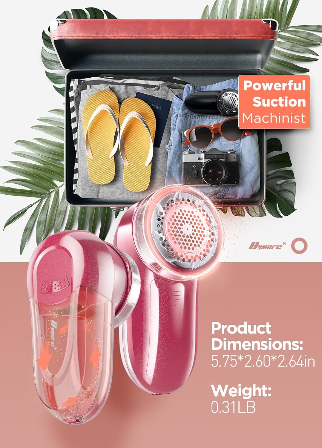Fabric Shaver, Lint Remover, Bymore Lint Shaver Defuzzer Sweater Shaver for Clothes and Furniture AC Adapter or Battery Operated Pill Fuzz Remover (Bright Red)
