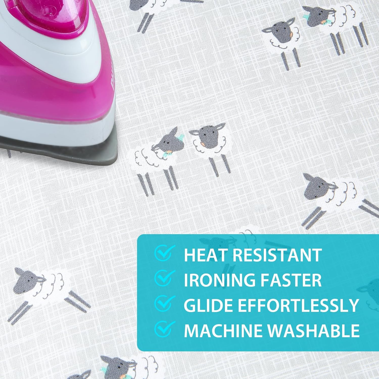 Over The Door Ironing Board Cover 13 x 37 inch, Small Iron Board Cover w 3 Layers Heat Reflective Thick Padding with Hook and Loop Fasteners (Gray Sheep)