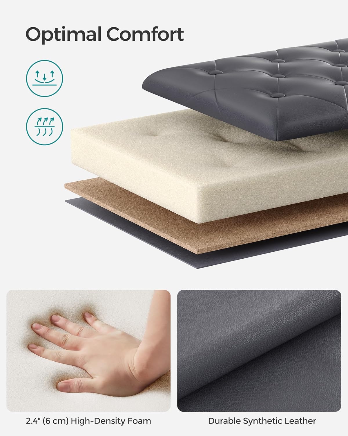 - [Comfort Meets Style] Sit in comfort with a 2.4" (6 cm) thick high-density foam seat that resists deformation. Coupled with a premium synthetic leather and a tastefully tufted design, this storage bench blends comfort with style effortlessly