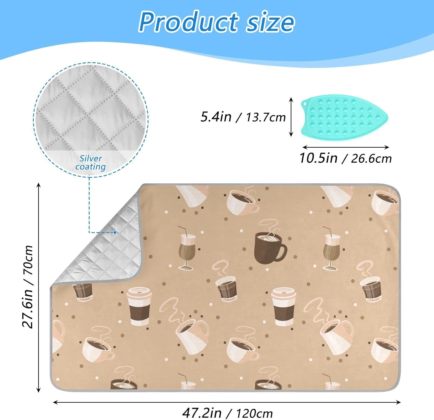 Ironing Mat Portable Ironing Pad Ironing Blanket for Table Top Heat Resistance Double-Side Using Travel Large 47.2 x 27.6 Inch Foldable Lightweight Coffee Cup