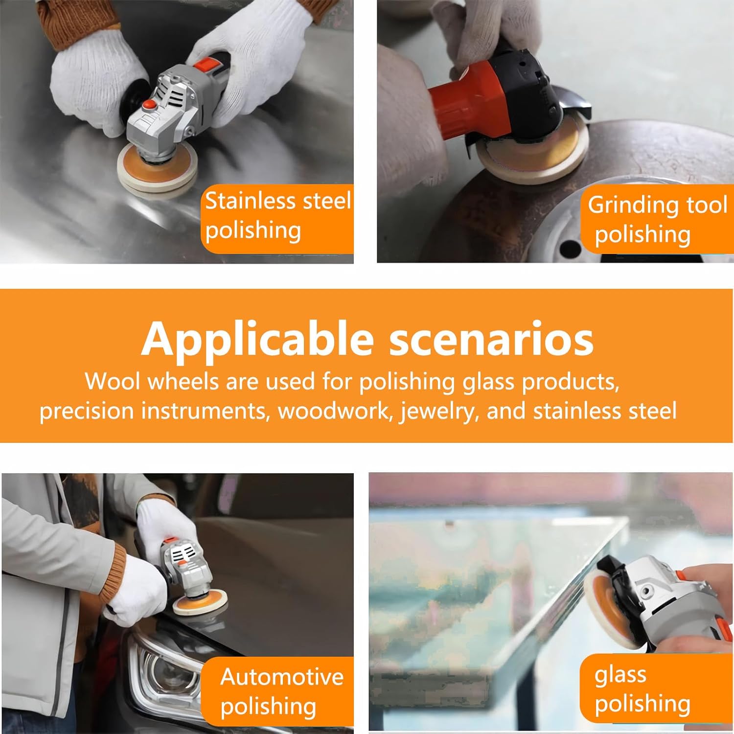 - 【STRONG COMPATIBILITY】 - it widely used Our buffing wheel pads in various surface buffing and cleaning, such as metal derusting, glass and ceramic polishing, marble, automotive and wood floor polishing, etc. And you can use the buffing waxes can be used for polishing, cutting, waxing, cleaning, repairing, restoring, reviving etc. on any material like: Aluminum, Stainless, Steel, Brass, Cast-iron, Auto Body car work, Appliances & Jewelry.