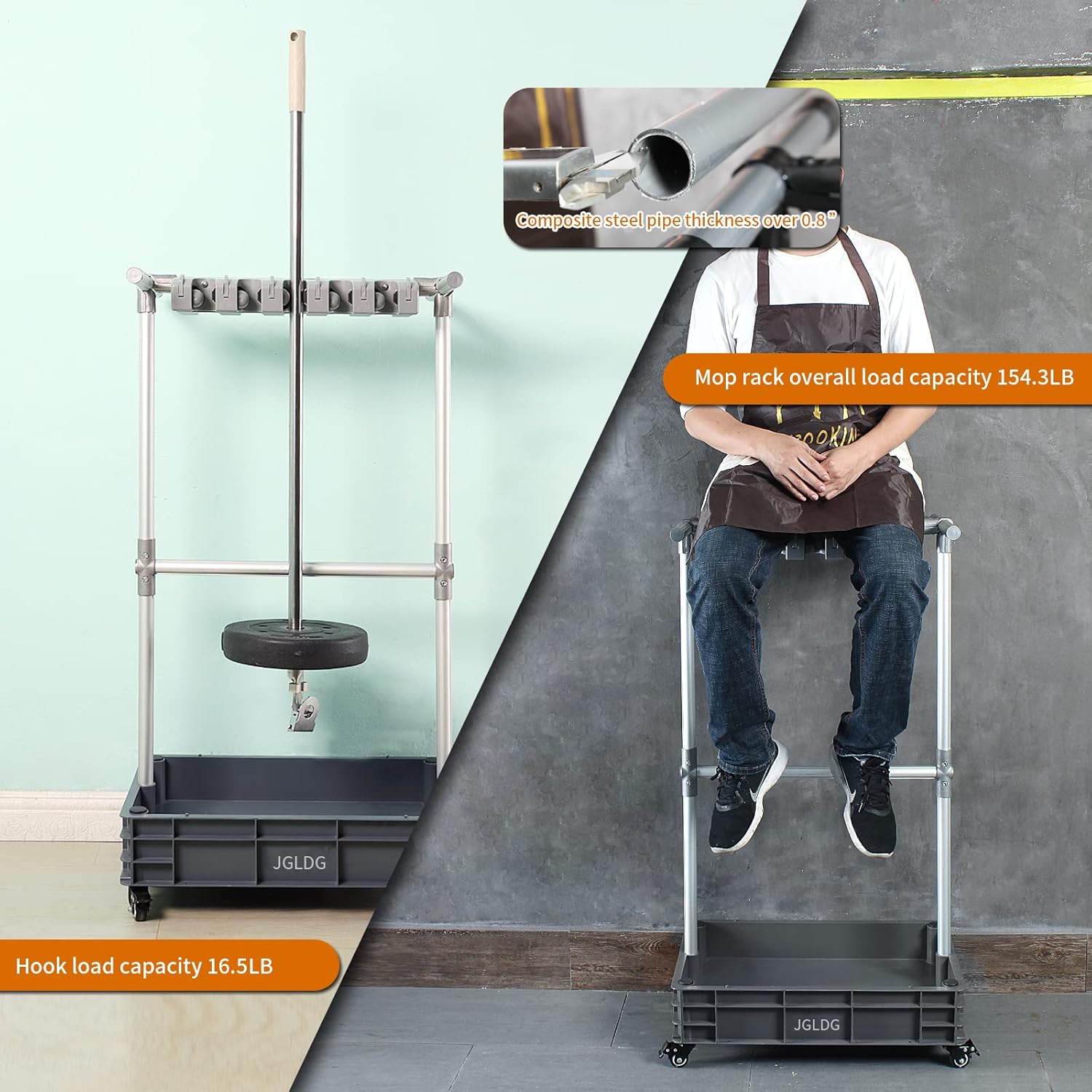 Broom mop Holder Cleaning Supplies Organizer Janitor carts on Wheels Housekeeping Station Storage Tools for Garage, Garden, Closet, Cabinet