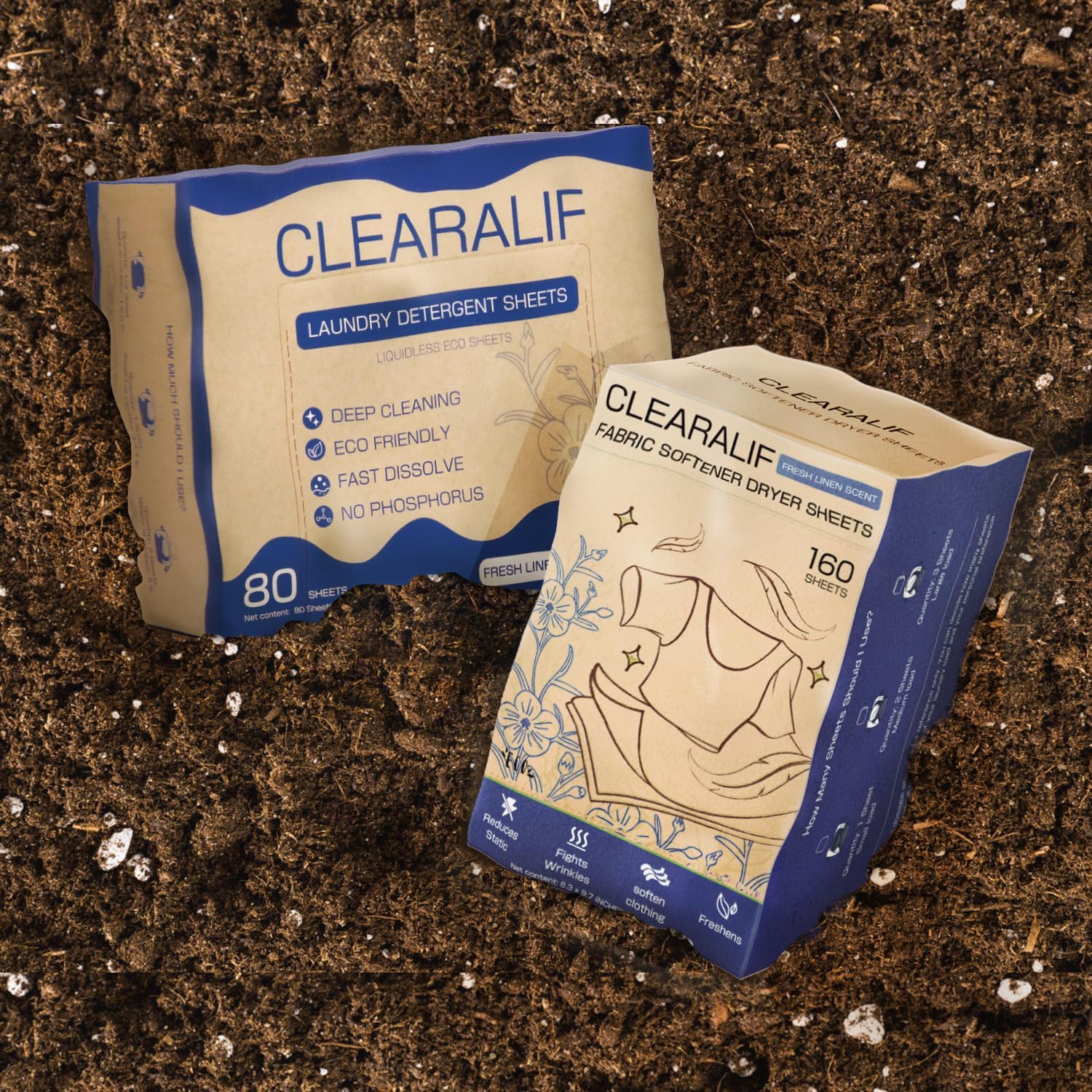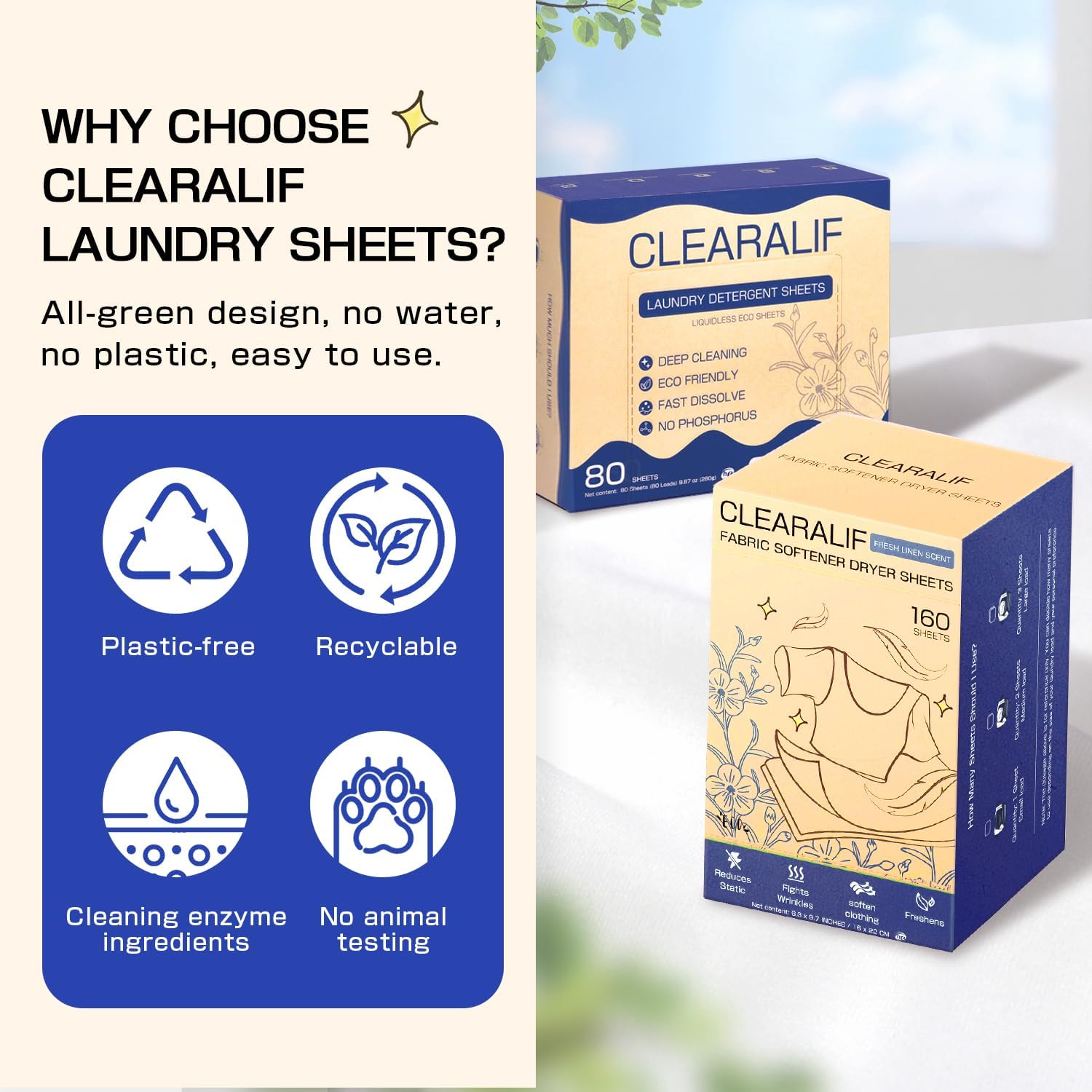 Clearalif All in One Laundry Detergent Sheets Kit, Fresh Linen Scent, 160 Loads Laundry Sheets + 160 Drying Sheets, Laundry Set Great for Travel, Softener Sheets Eco Package Friendly & Hypoallergenic