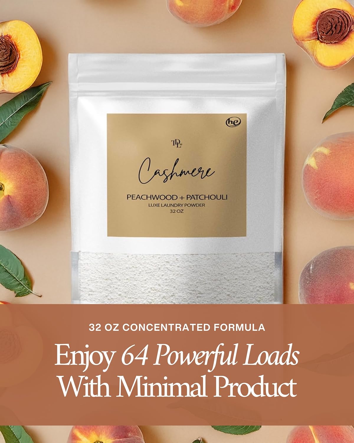 Home "CASHMERE" Laundry Detergent Powder & Laundry Booster – Ultra-Concentrated Peachwood & Patchouli Scent – Plant-Based, Stain-Fighting, HE Safe, Gentle on Skin – 32 oz / 64 Loads