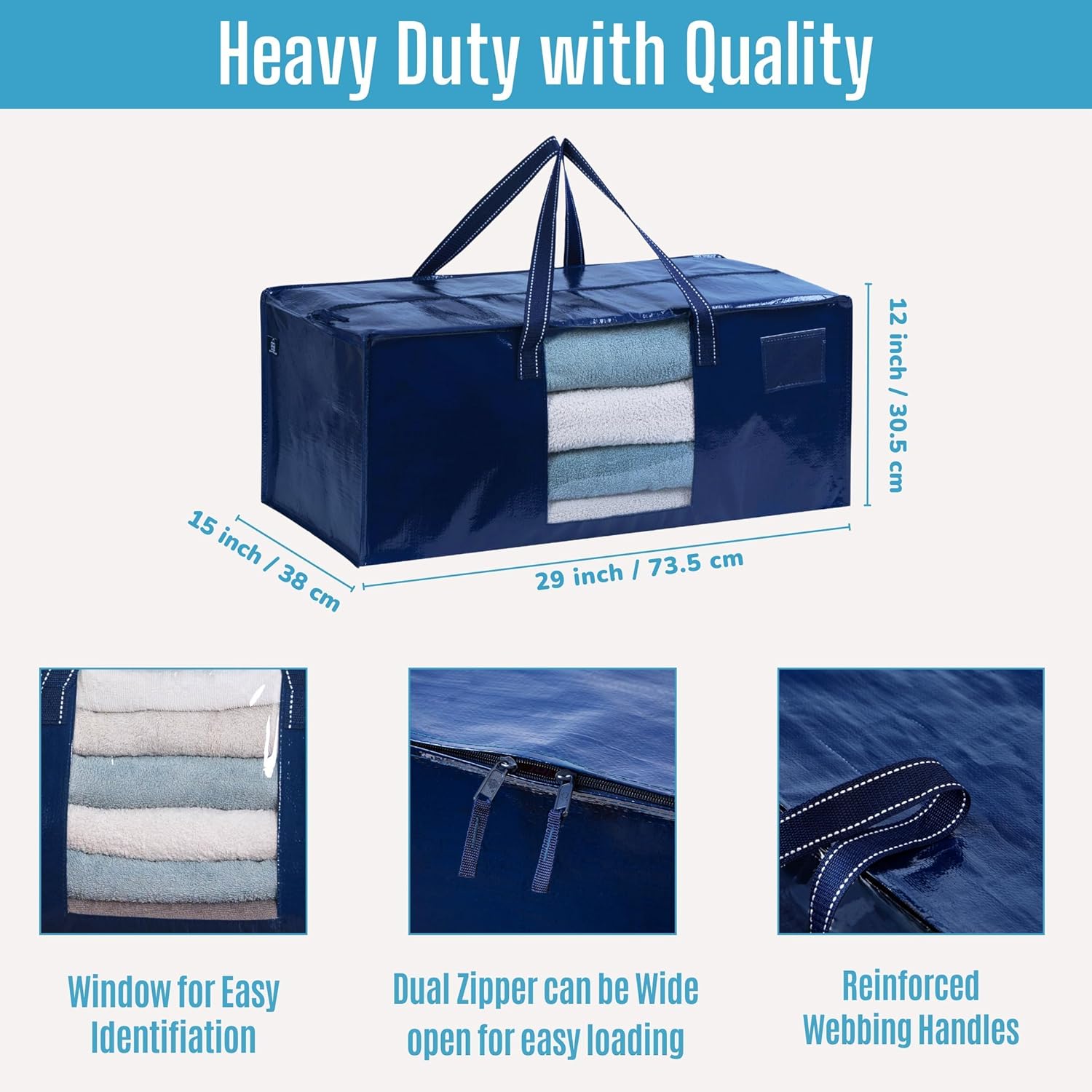 - Multi-Functional- These packing bags serve as the ultimate solution for all your storage needs, whether it's clothes, blankets, or any other items. Built with durability and spaciousness in mind, they're the perfect storage totes for closets, wardrobes, attics, basements, RVs, and beyond. Their stackable and adaptable design makes organizing a breeze, whether at home or in the garage. Plus, their foldable design offers space-saving convenience, allowing for efficient storage between uses.