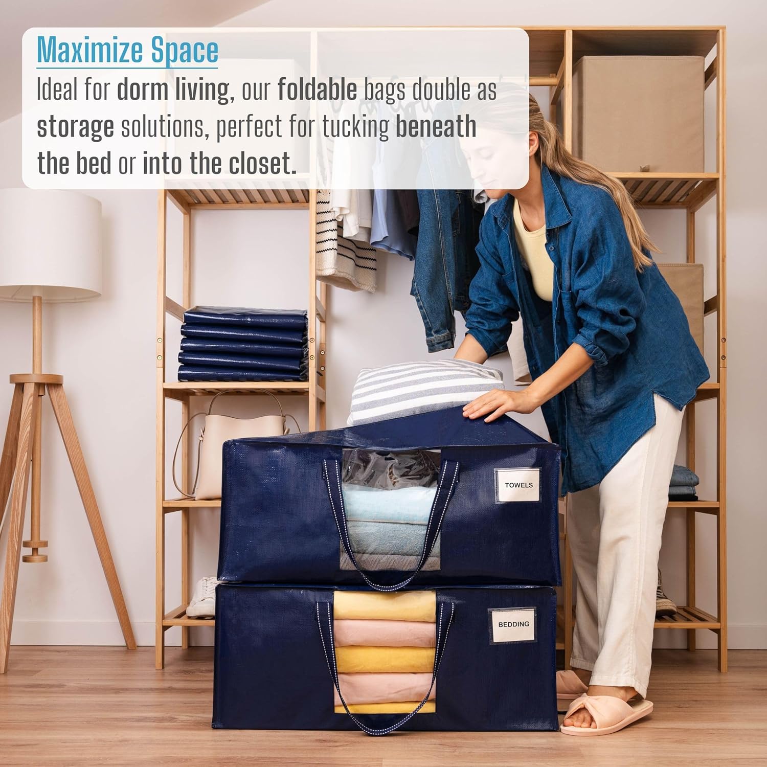 VENO 8 Pack Moving Bags Extra Large Storage Bags for College Move-In, Heavy-Duty Storage Totes, Packing Boxes, and Wardrobe Moving Supplies - Durable Laundry Bags for Clothes (Blue w/Window, 8 Pack)