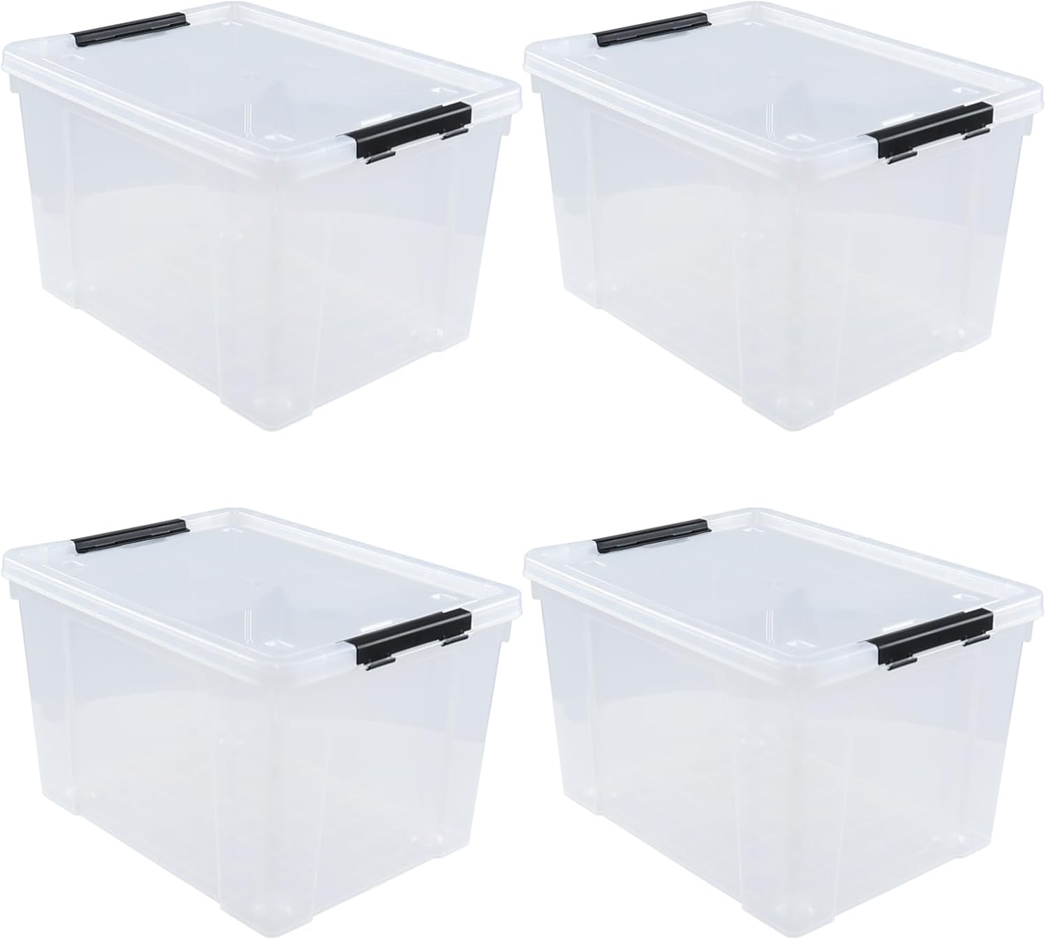 4-Pack 50 L Clear Plastic Storage Bin, Large Clear Latch Box with Wheels