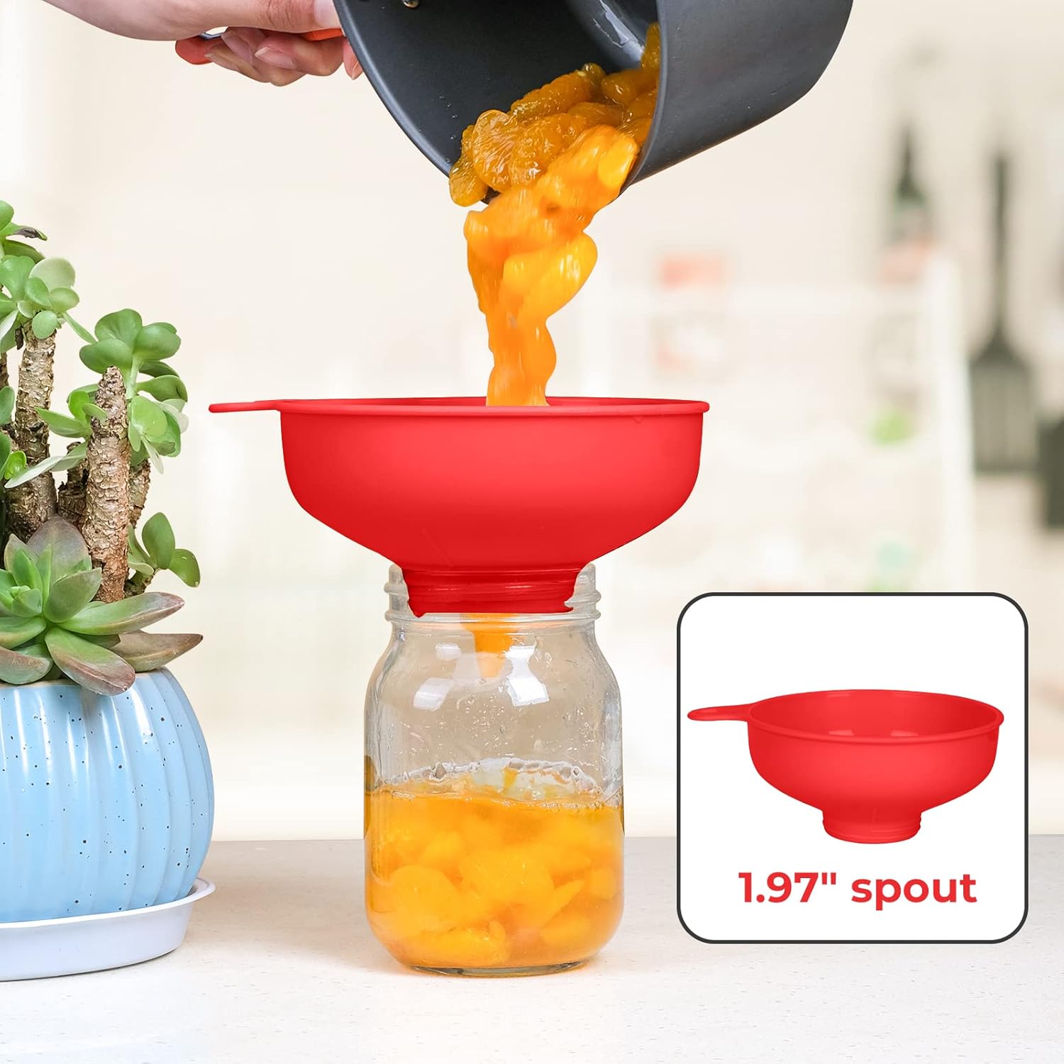 Wide Mouth Kitchen Funnel, Food Grade Plastic Cooking Canning Funnel with 4 Sizes Spouts for Filling Wide and Regular Mason Jars, Spray Dropper Oil Bottle Jug Spices Shampoo Sauce