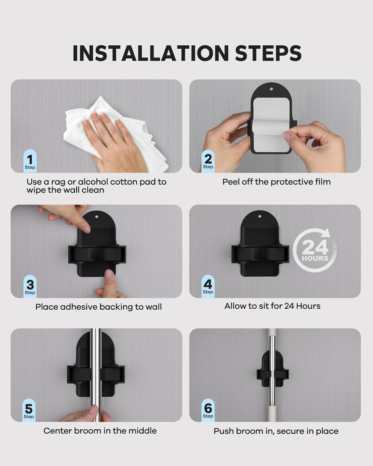 - Waterproof Non-Slip - You don't have to worry about the broom and dustpan hanger being stained with water or falling off, it can operate efficiently for a long time.