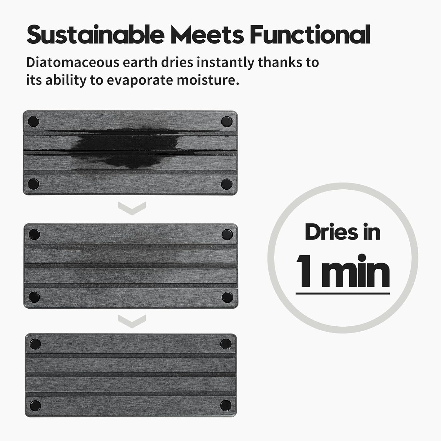 - 【Sustainable Materials】Diatomaceous earth dries instantly thanks to its ability to evaporate water. Safe, Sustainable and Long-lasting.
