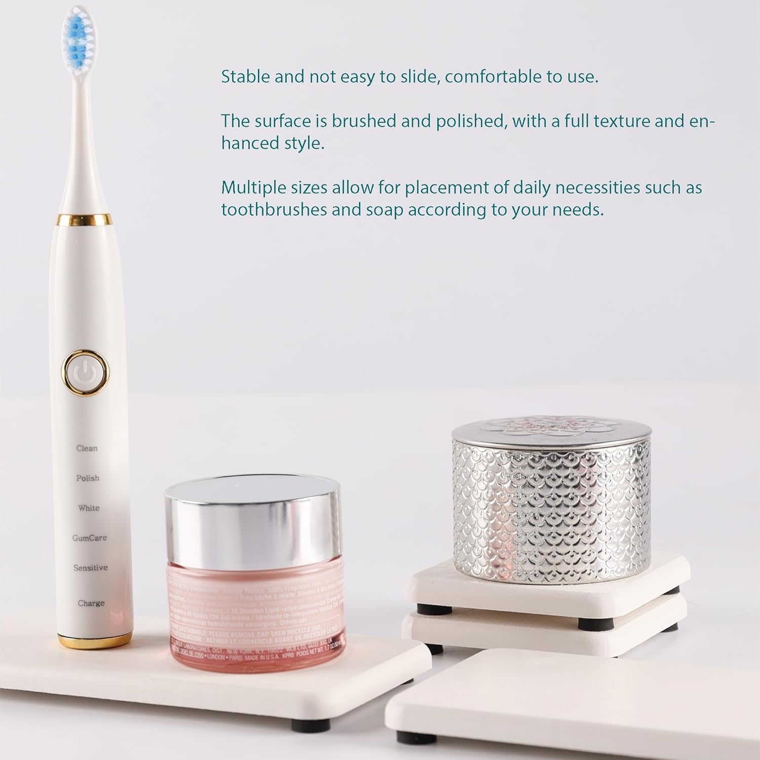 - Made from natural Diatom mud and plant fiber, small holes within diatomite enable it have amazing water absorption. They could absorb water and gets dry in a few minutes. It makes the Bathroom Counter top more dry and tidy.