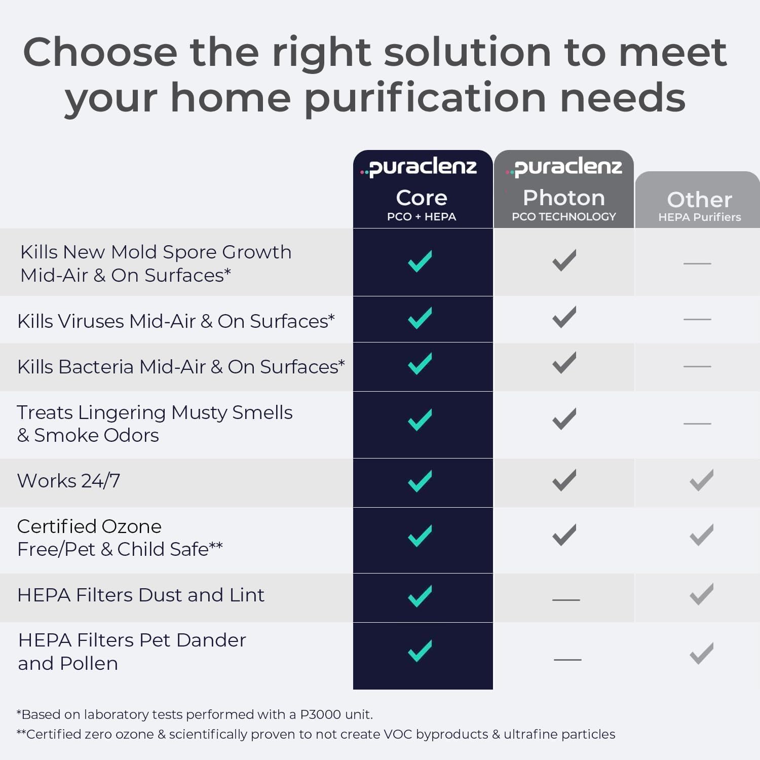 - ADVANCED MOLD DEFENSE - The Puraclenz Core stops new mold spore growth in the air and on surfaces with a 99.75% success rate against Candida albicans - the common cause of fungal infections - on surfaces. In addition, it reduces odors and mycotoxins, byproducts of mold, that can have long-term health effects by reducing new mold growth.
