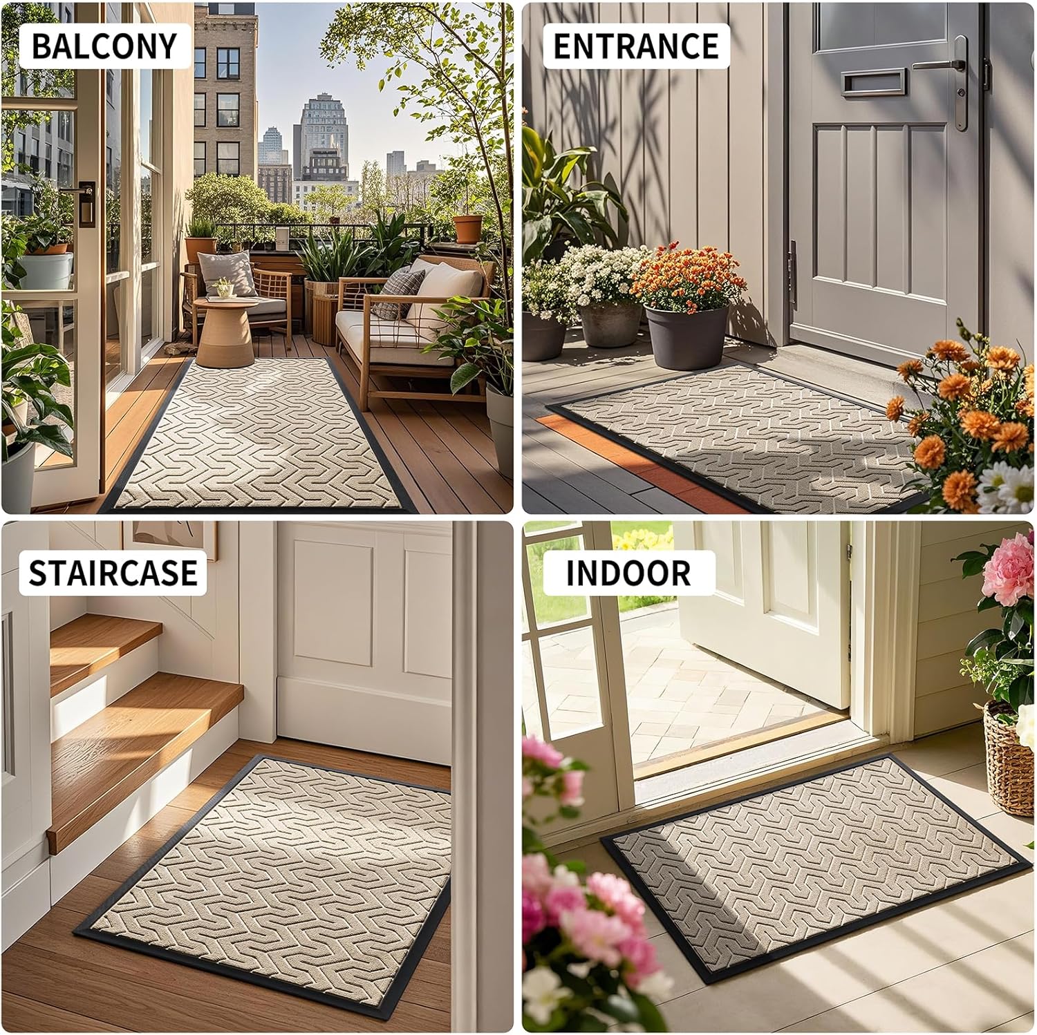 - Versatile for Any Space: Perfect not only for front and back doors, but also ideal for multiple scenarios. Place this welcome mat at garage entrances, patio doors, storefronts, RVs, or even as a stable mat under pet bowls and heavy items. Its sturdy construction and functional design reliably enhances practicality, ensuring it meets all your needs