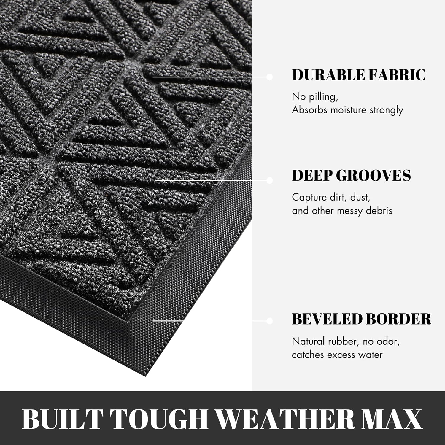 - 【Keep Domestic Cleanliness】: The surface of the Yimobra outdoor door mat is concave-convex texture formed by the triangular pattern, and its grooves and triangular orientation changes, producing eight directions of scraping edges. Tests have shown that it is up to 40% more effective at trapping dirt than an ordinary grid texture doormat. It works to ensure that your home remains clean