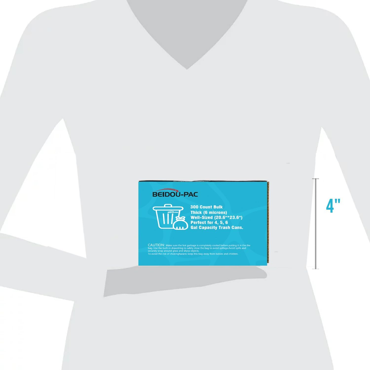 - 1, Product information: BEIDOU-PAC 4-6 gallon clear plastic recycling Can Liners, Size: 20.6"*23.6"x 6 mic, Total 300 clear bags bulk (50 PCS/ROLL , 6 CORELESS ROLLS/CTN), Perfect for 4, 5, 6 Gal Capacity Office, Bedroom and Kitchen Wastebasket trash bins.