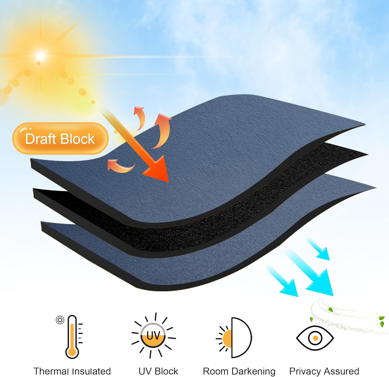 - LIGHT BLOCKING - Curtains block 85-98% sunlights (Dark color works better), which is effectively block most of the harmful sunlights and UV rays, protect your furniture, floors and valuables from the sun. Suit for maximum privacy and undisturbed sleep.