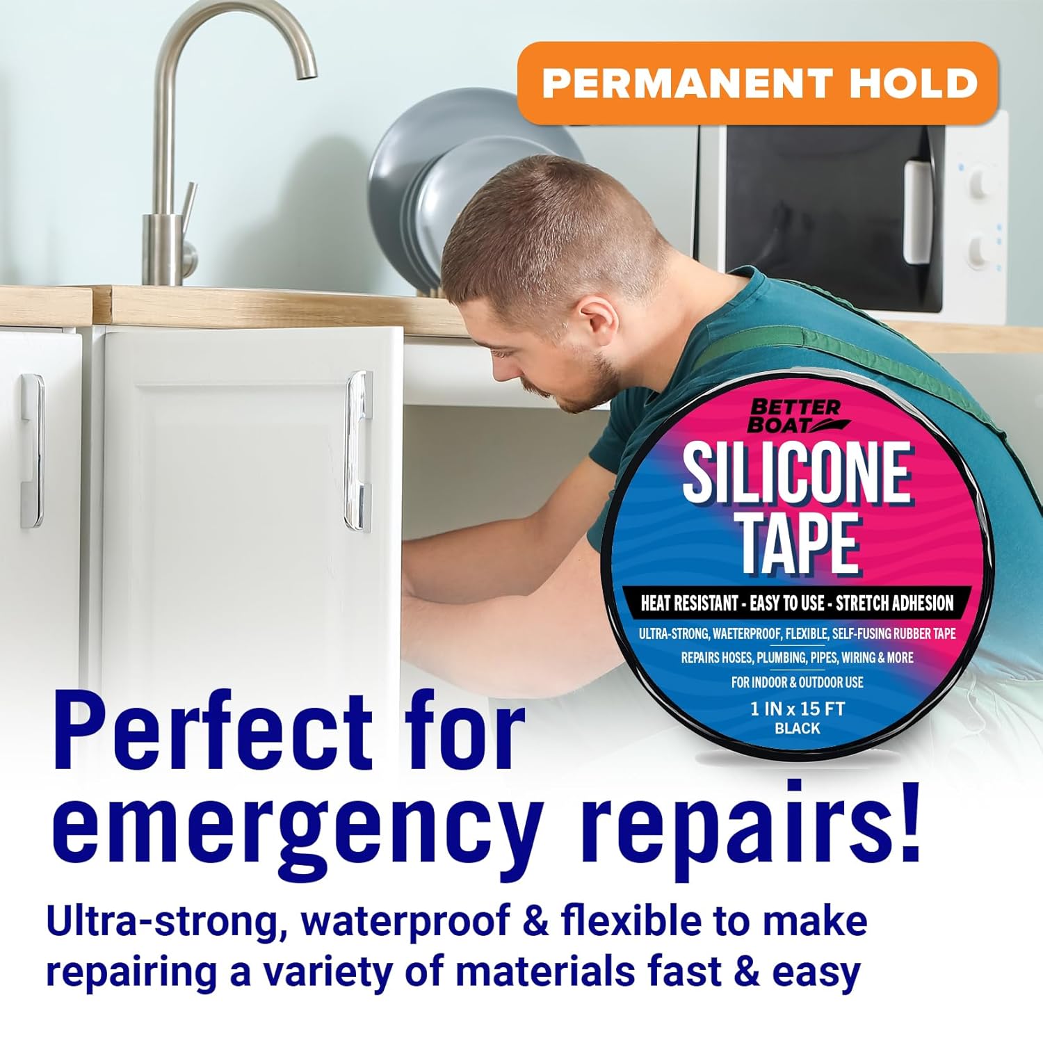 - PERFECT FOR RESCUE REPAIRS: Our premium grade silicone tape for plumbing, electrical and more is 1in x 15ft and black. 100% silicone making it ideal as rubber electrical tape, hose repair tape or wrapping rope ends and grip tool handles.