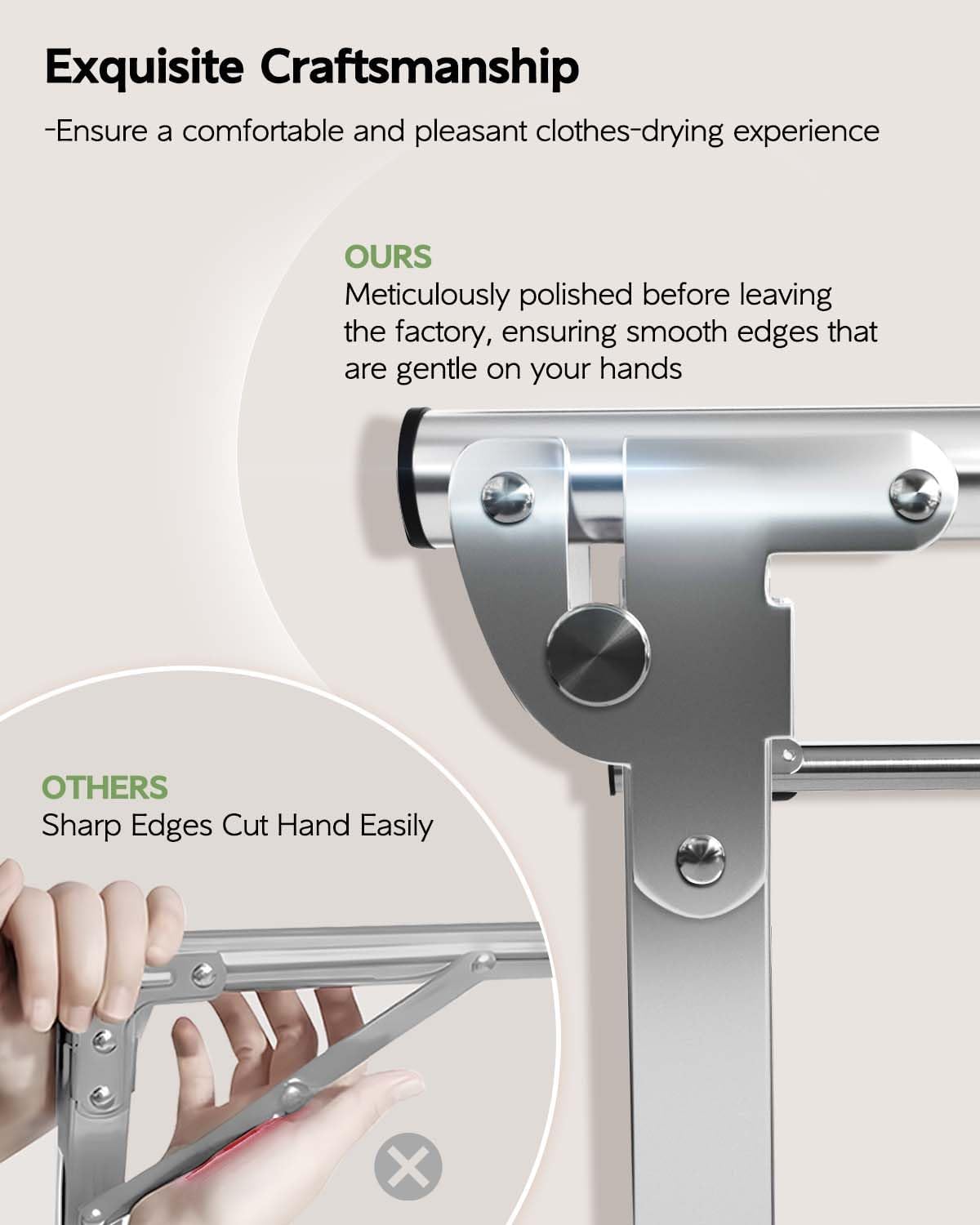 - Save Money & Energy: The indoor clothes drying rack serves as a home humidifier during winter, adding moisture to dry indoor environments. In summer, it is an outdoor clothes drying rack that provides the freshest, healthiest smell under warm sunlight. Conserve energy and contribute to the environment by air-drying your laundry