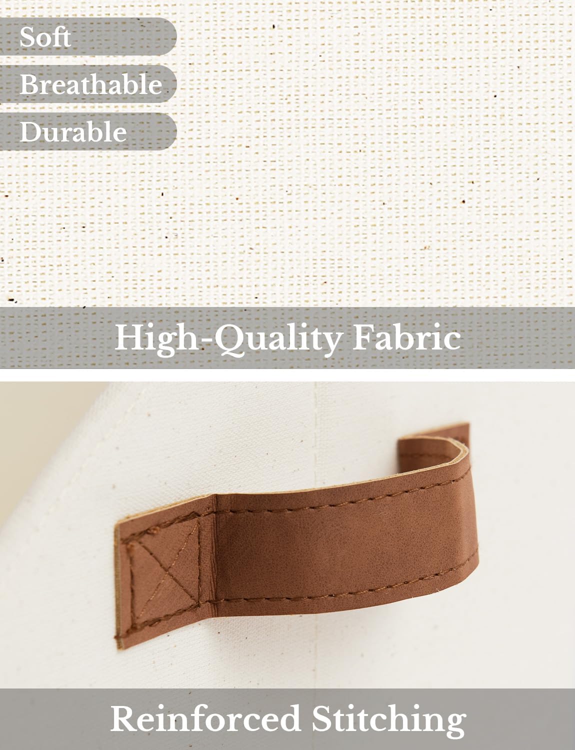 StorageWorks Closet Storage Bins, Trapezoid Organizer Box for Shelves, Fabric Clothes Bin, Foldable Organizing Baskets with Handles, Small, Ivory White, 3-Pack