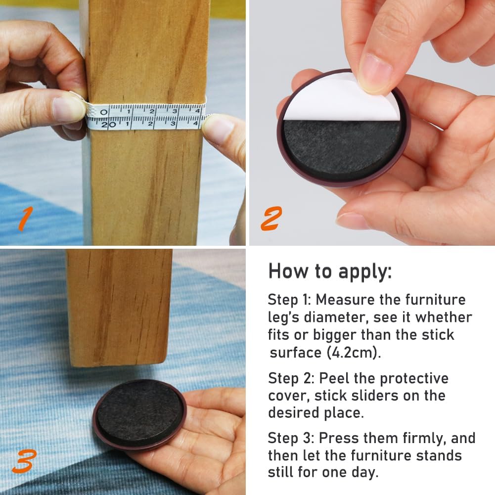 - ★WIDE APPLICATION - With strong adhesion, the chair sliders can be easily stick to wood, glass, metal, plastics, widely used on dining table, desk, chairs and other furniture legs fit the size