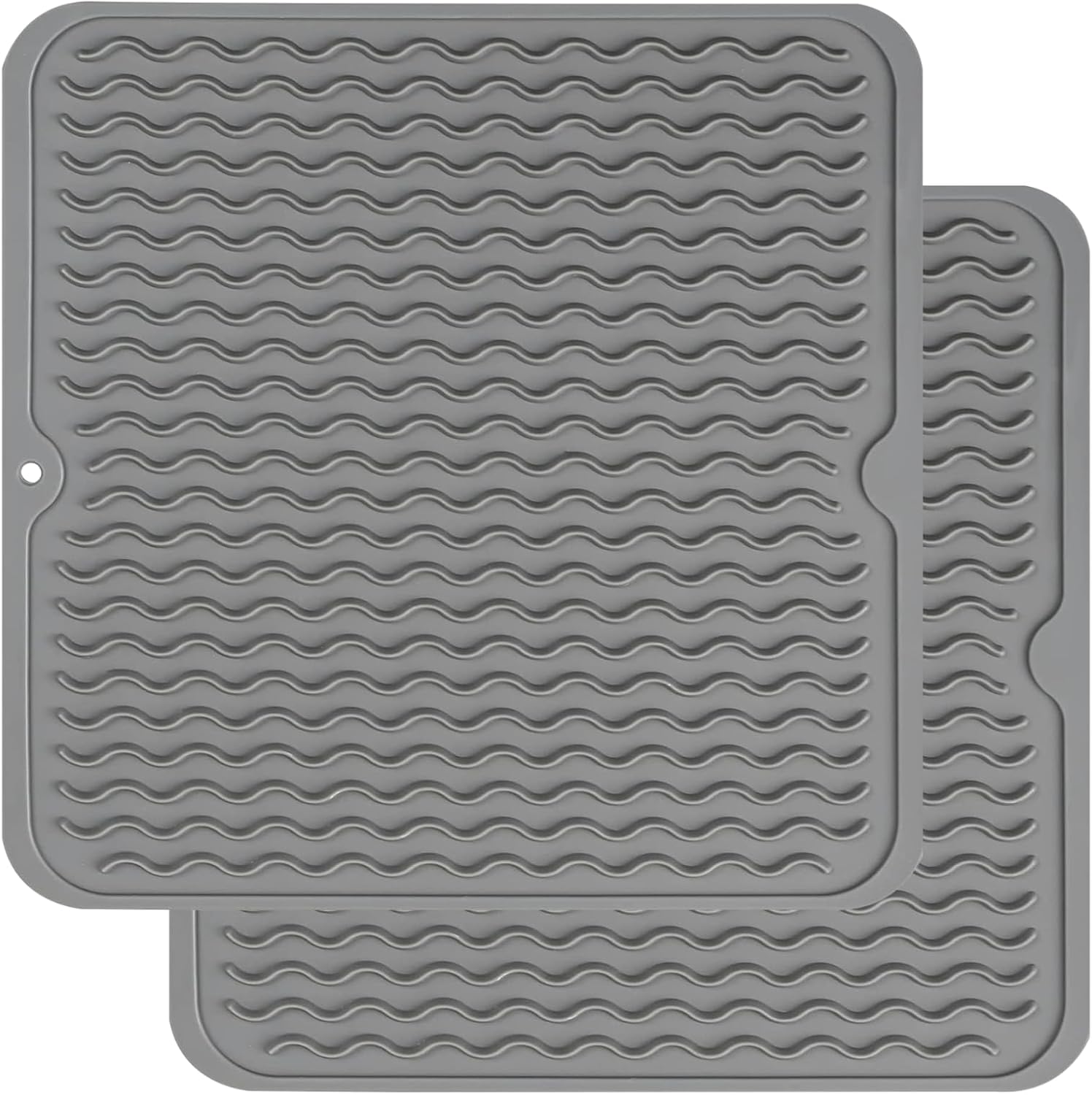 ZLR 2 Pcs Silicone Dish Drying Mats for Kitchen Counter, Eco-Friendly Fast Dry Dish Mat, Easy Clean Multi Usage Drying Matt, Heat Resistant Trivet, 12" x 12" Middle, Gray