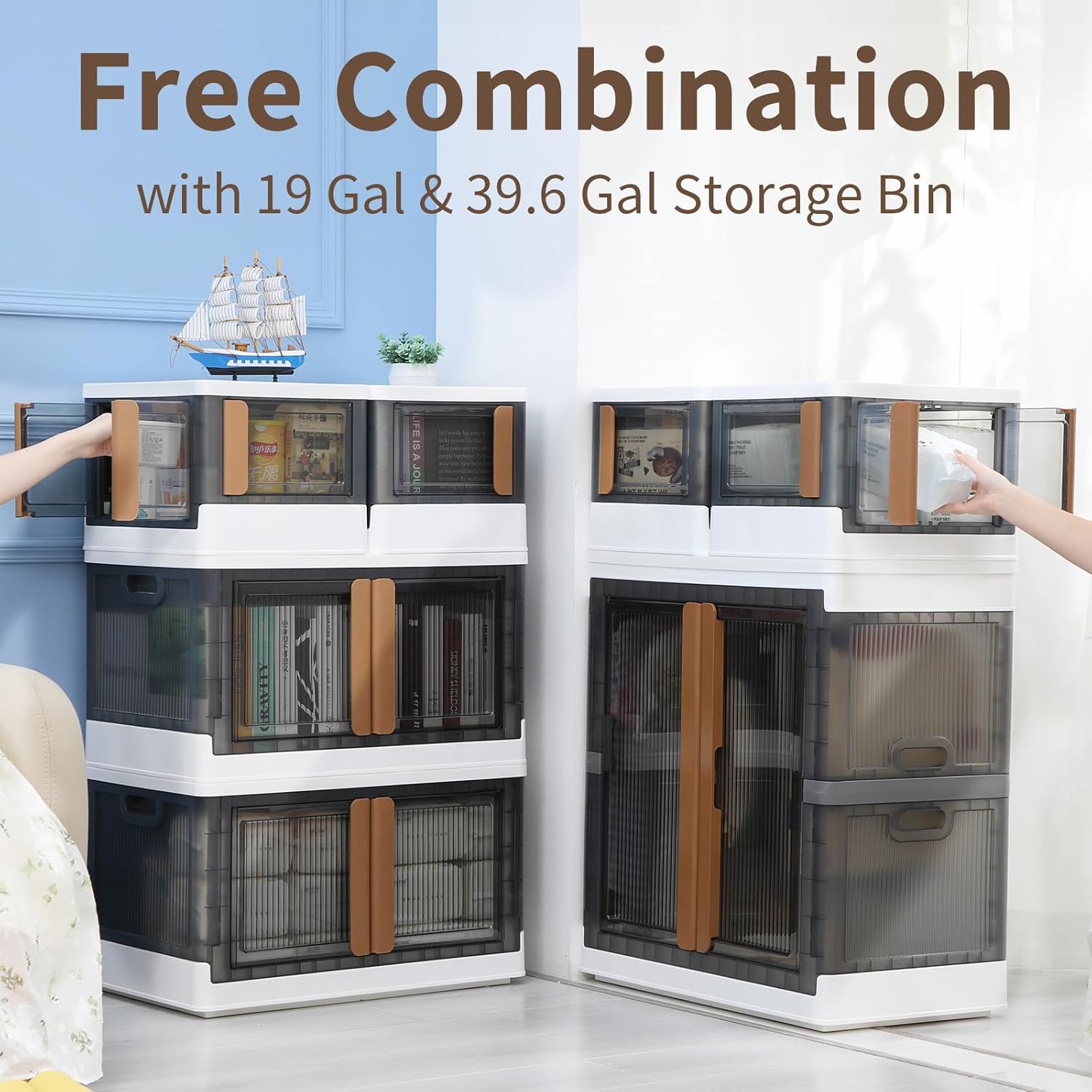 - 【FREE COMBINATION】2 pack 6.86 Gal bins can be entirely matched with 1 pack 19 Gal bin or 1 pack 39.6 Gal closet bin in horizontally. DIY your own storage system.