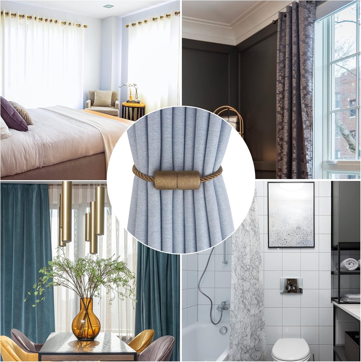 - Simple To Use- Holdback your curtain in seconds with a magnet, You only need to open the magnetic curtain holder and buckle the curtains to achieve the function of fixing the curtains. A better choice to tie back your curtains! Simply tie on anywhere when not in use. Our products do not need to use hooks, Will not damage your walls.